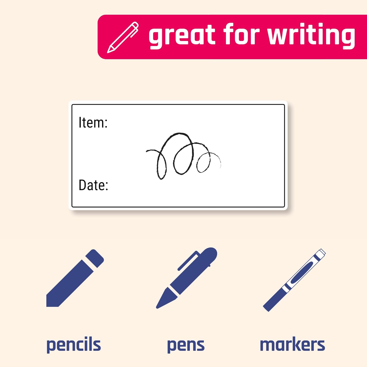- White Surface with "Item" and "Date" printed. Write on it with pens or markers.