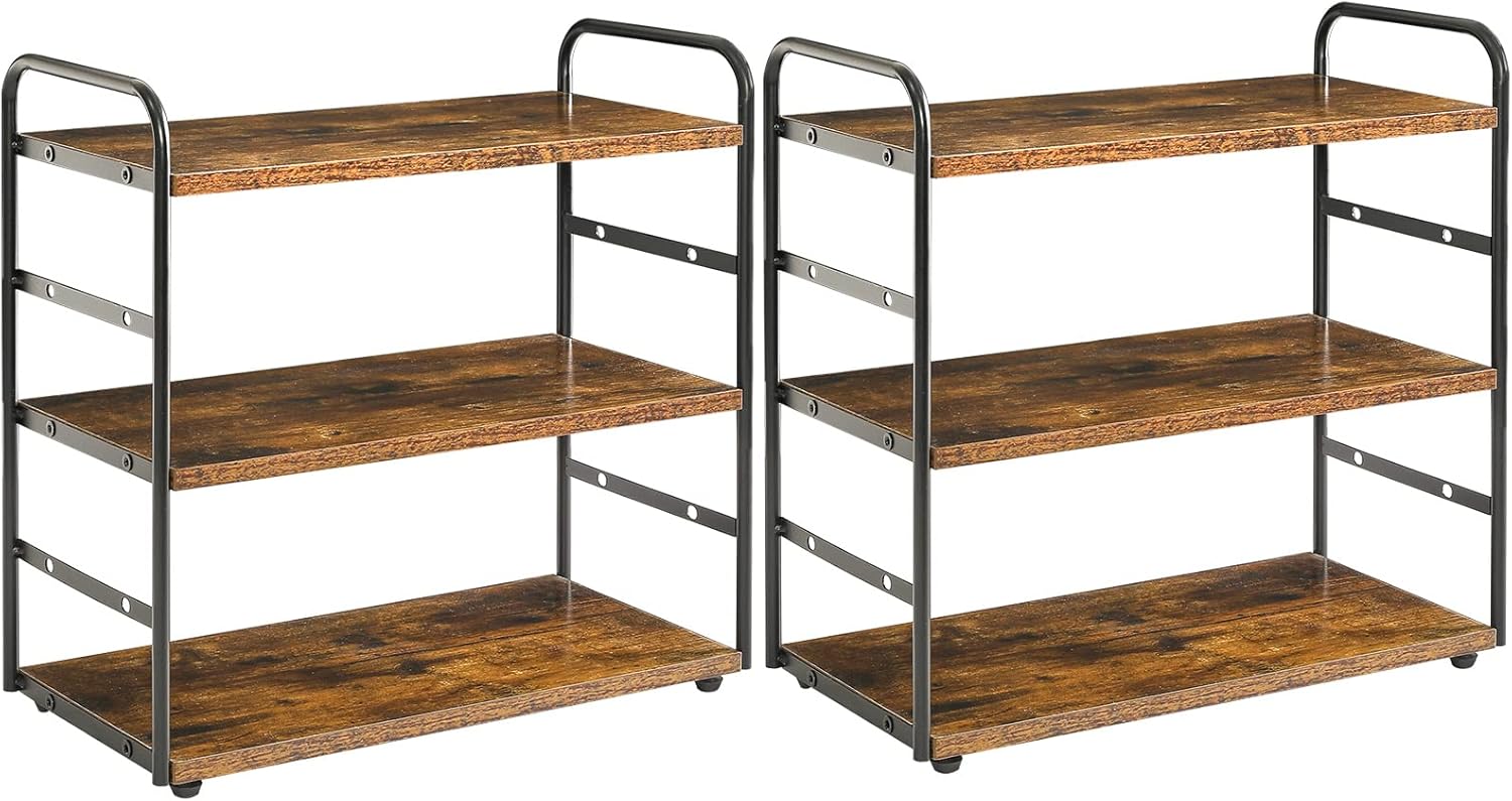 IBUYKE Set of 2 3-Tier Bathroom Counter Organizer, Tray Countertop Storage Shelf, Kitchen Spice Rack Standing, Counter Standing Rack Cosmetic Holder, Rustic Brown TWJ001H-2