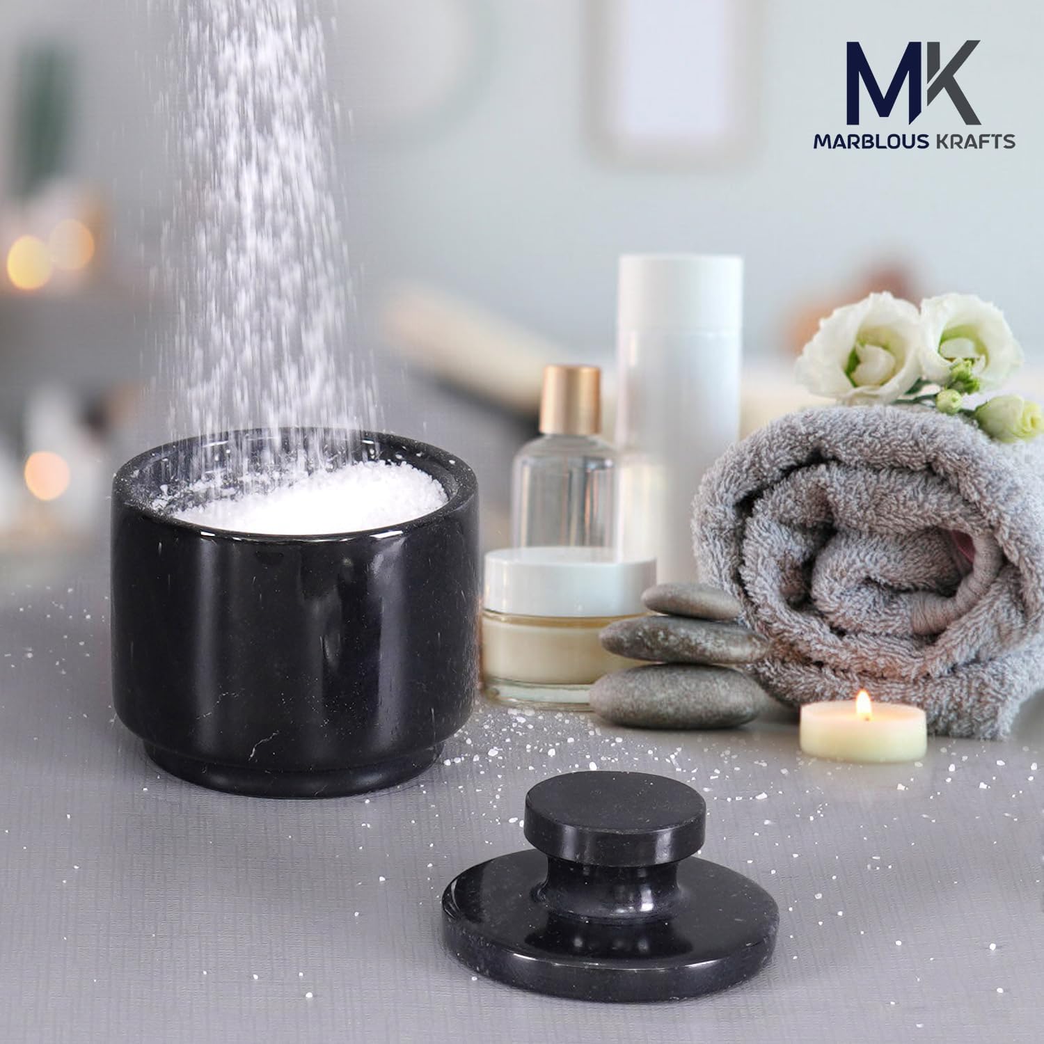 - WHAT IS INCLUDED- 1x Premium Marble Salt Cellar With Lid. Comes Along With securely packaged with Marblous Kraft branded packaging.