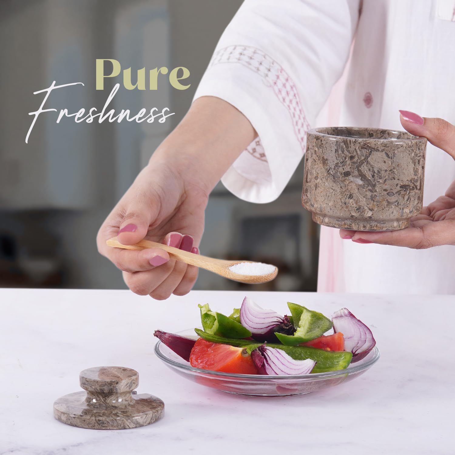 - WHAT IS INCLUDED- 1x Premium Marble Salt Cellar With Lid. Comes Along With securely packaged with Marblous Kraft branded packaging.