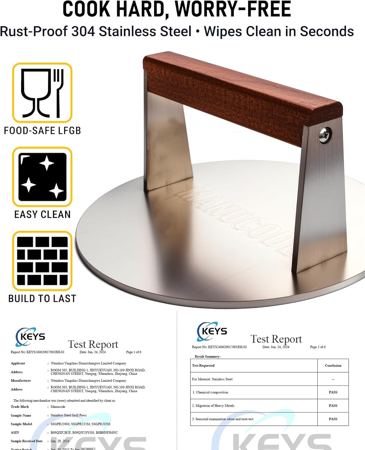 - SAFETY FIRST IN THE KITCHEN: Our griddle press features an extended anti-rotation wooden handle, keeping you cool and safe even during long cooking sessions