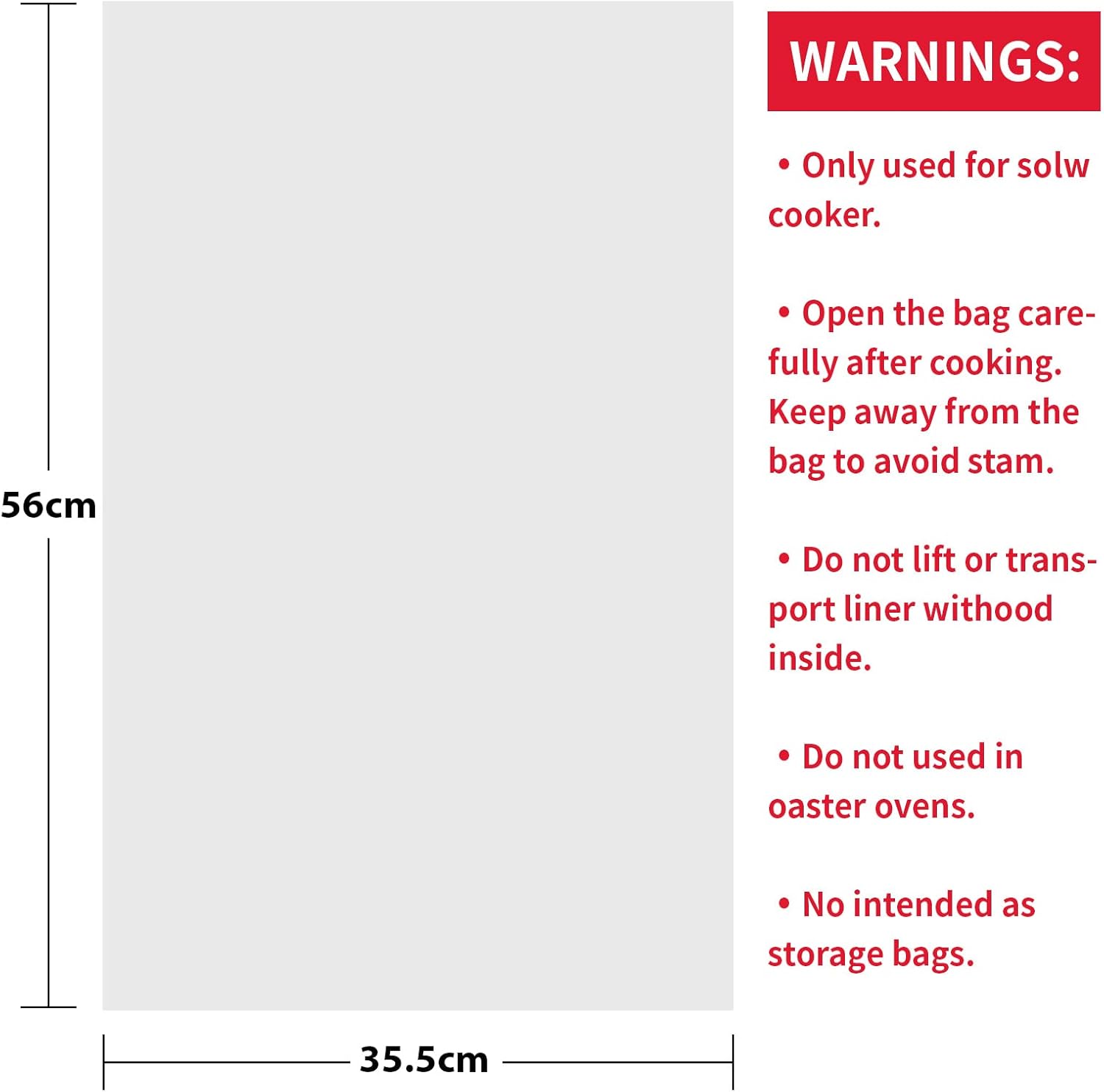 - Size: Our shop has three different sizes of bags, small size 13 x 15 inches to fit 1.5 to 3-quart slow cookers, large size 13 x 21 inches to fit 4 to 8-quart slow cookers, extra large size 14 x 22 inches to fit 6 to 10-quart slow cookers.If you have any questions after receive it, please feel free to contact us at any time!