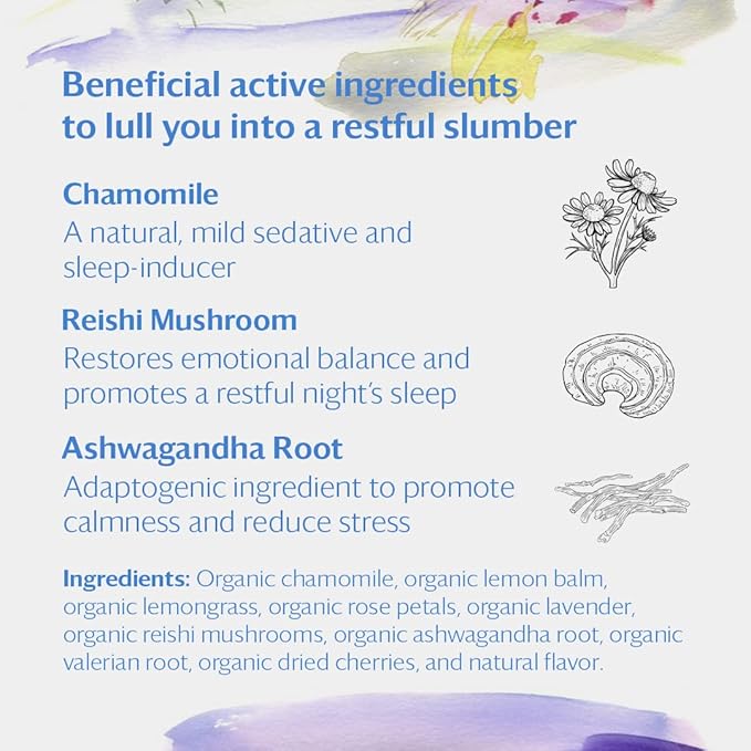 • REST. Let you palate dream up a field of golden chamomile, lavender, and rose petals supported by calming and balancing ashwagndha, valerian root, and reishi mushrooms.