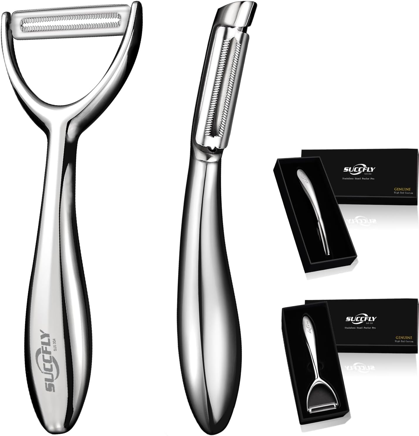 Vegetable Peeler Stainless Steel,Ultra Sharp Potato Peelers for Kitchen, Premium Veggie Fruit Peeler, Carrot Peeler, Rotary Serrated Blade, Thickened Non-Slip Ergonomic Handle(5-year warranty)