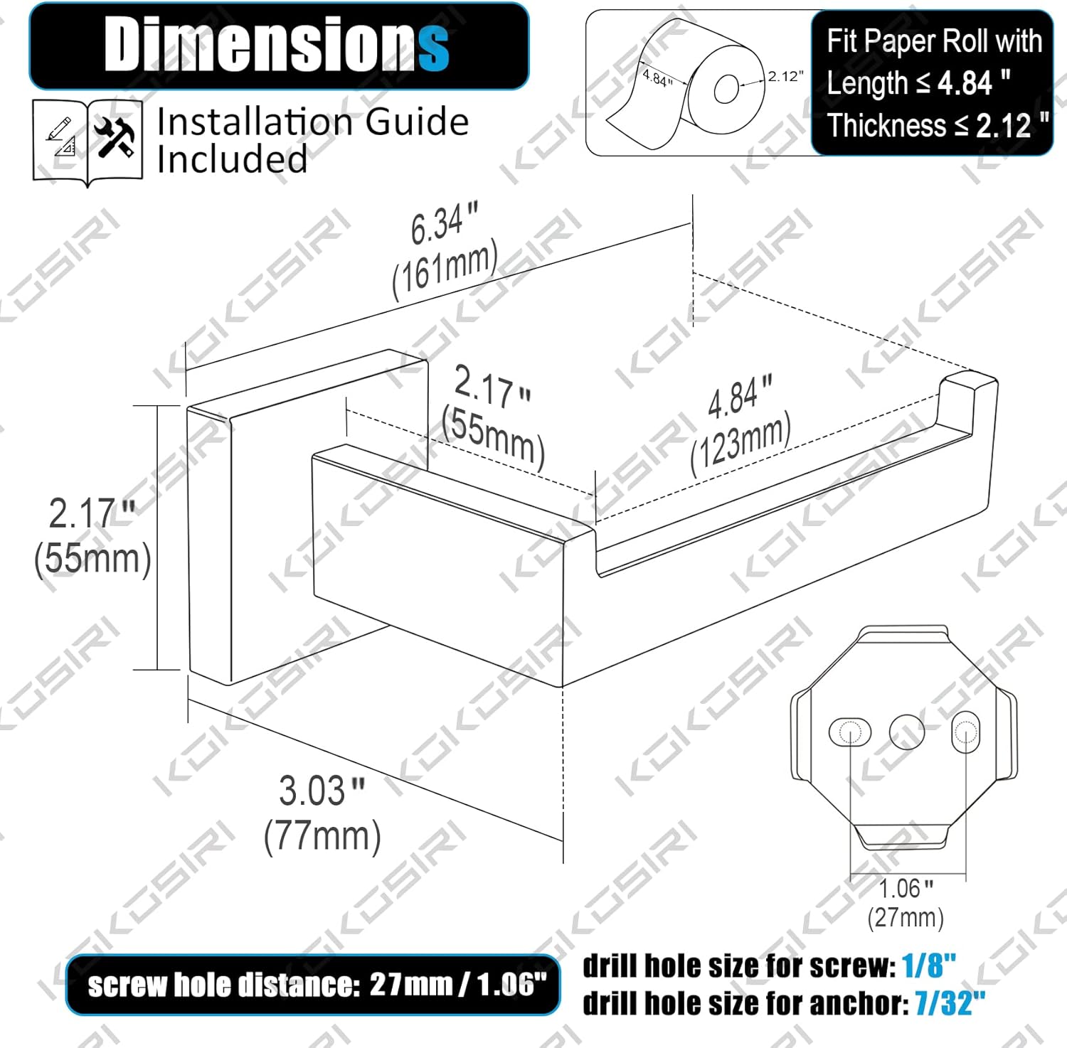 - ◄ Rustproof Feature ► The roll paper holder can be installed in shower area, bathroom, kitchen, cabinet, garage and washroom. High quality material protects the roll holder from tarnish/scratch/corrosion in daily life.