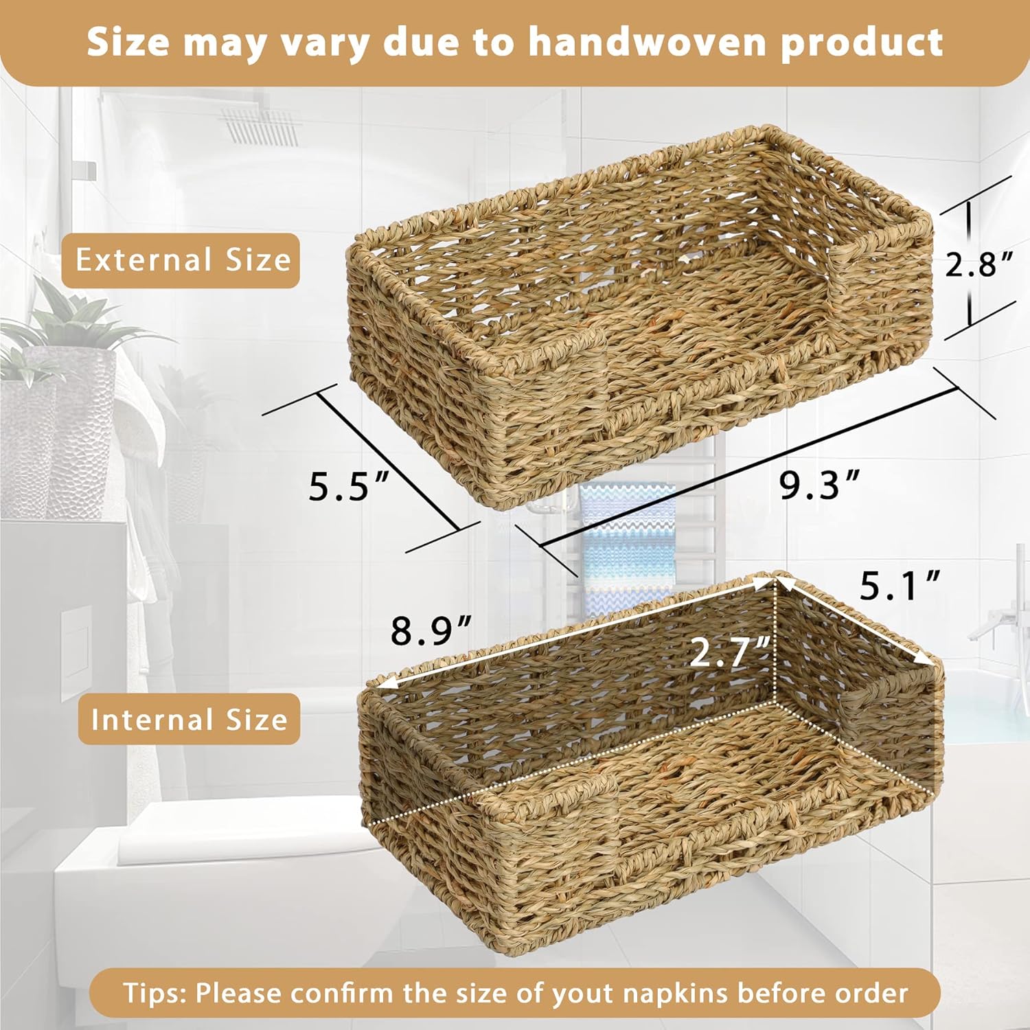 Bathroom Disposable Guest Towel Napkin Holder Long Seagrass Woven Rattan Wicker Table Dinner Paper Hand Guest Towel Napkin Basket Tray Caddy for Kitchen