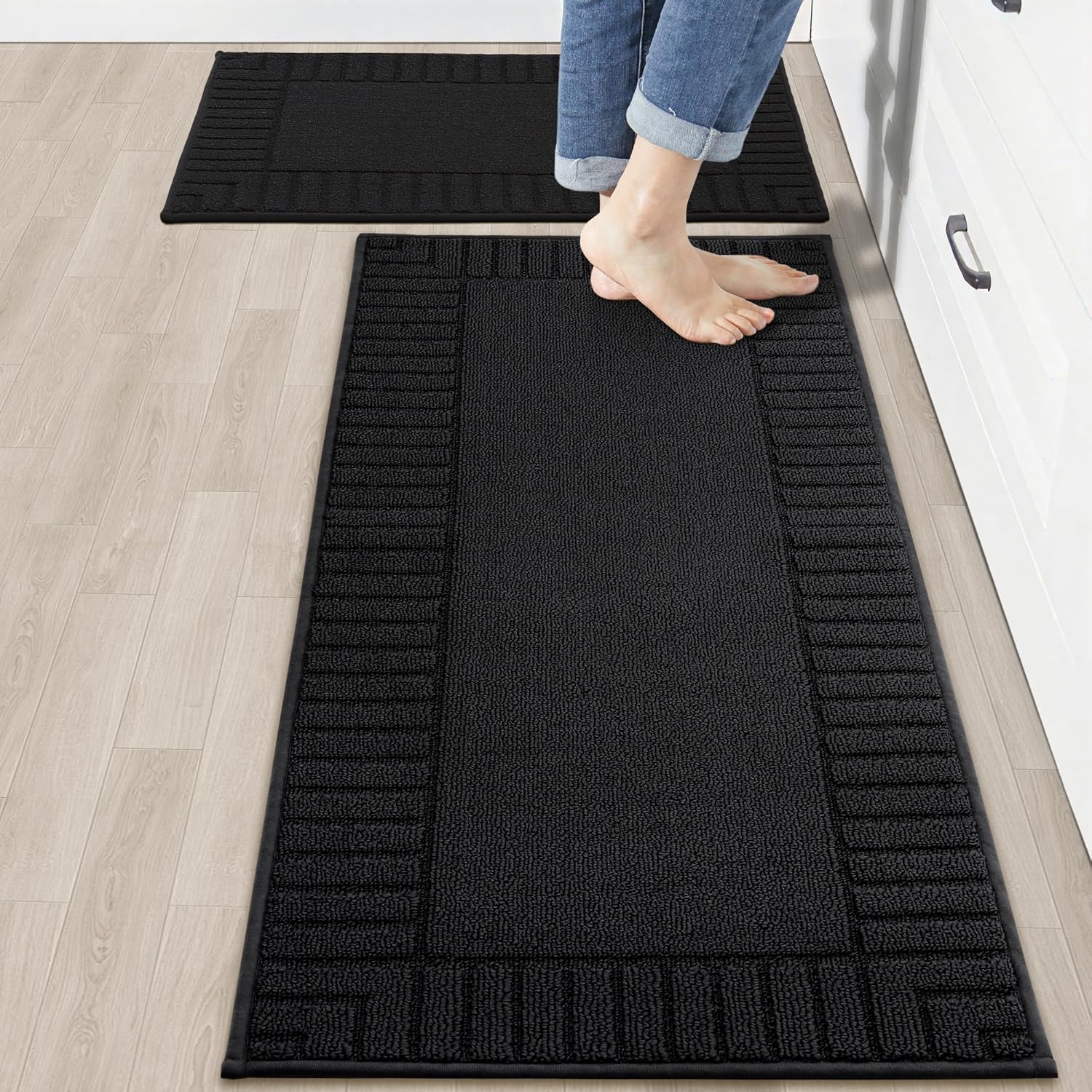 BEQHAUSE-Kitchen-Rugs-and-Mats,2 PCS Non Slip Kitchen Floor Mat,Absorbent Kitchen Mat Set Machine Washable Kitchen Runner Rug Black Kitchen Mat 20x30inch/20x48inch
