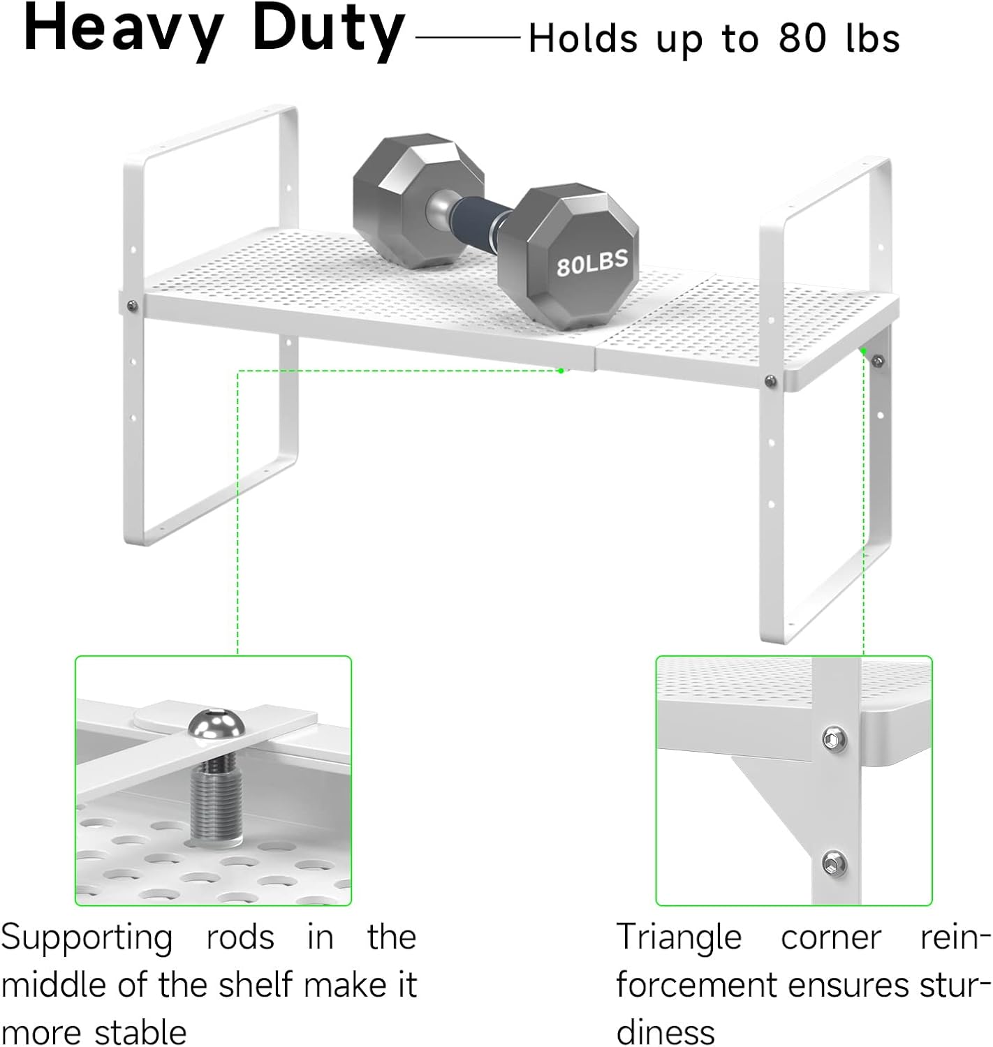 Expandable Cabinet Storage Shelf Stackable Organizer Rack for Kitchen Bathroom Pantry Spice Cupboard Coffee Countertop Home Office Desk Heavy Duty Nonslip White Small 2 Packs