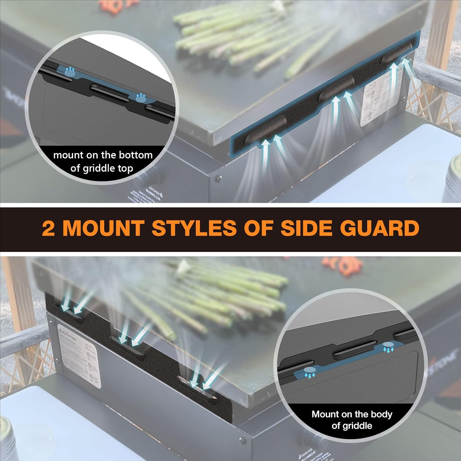 - PERFECT MATCH FOR YOUR GRIDDLE —These wind guards cover the gaps between the Blackstone griddle top and the burners, compatible with rear grease cup, side shelf, hood and cover. And you are able to leave them attached on the Blackstone grill during travel.
