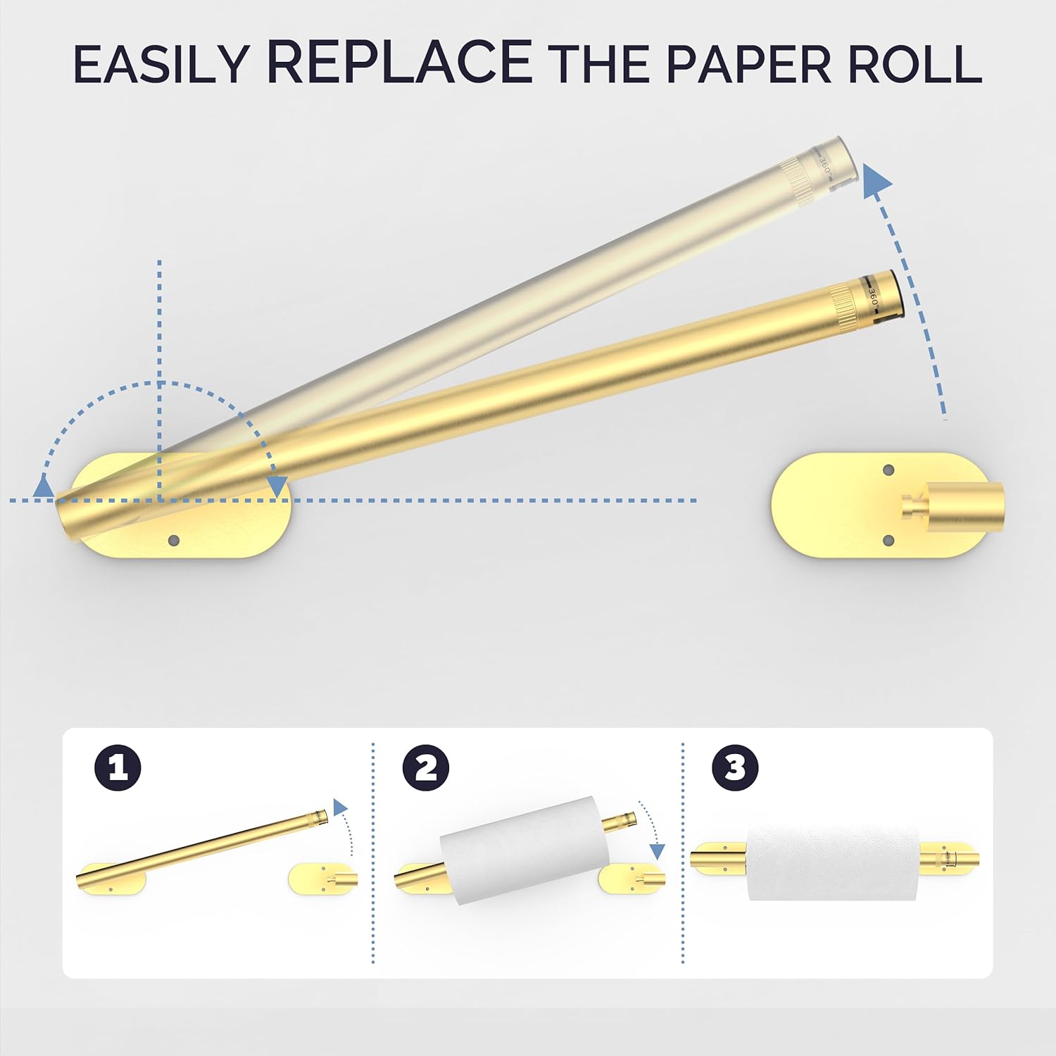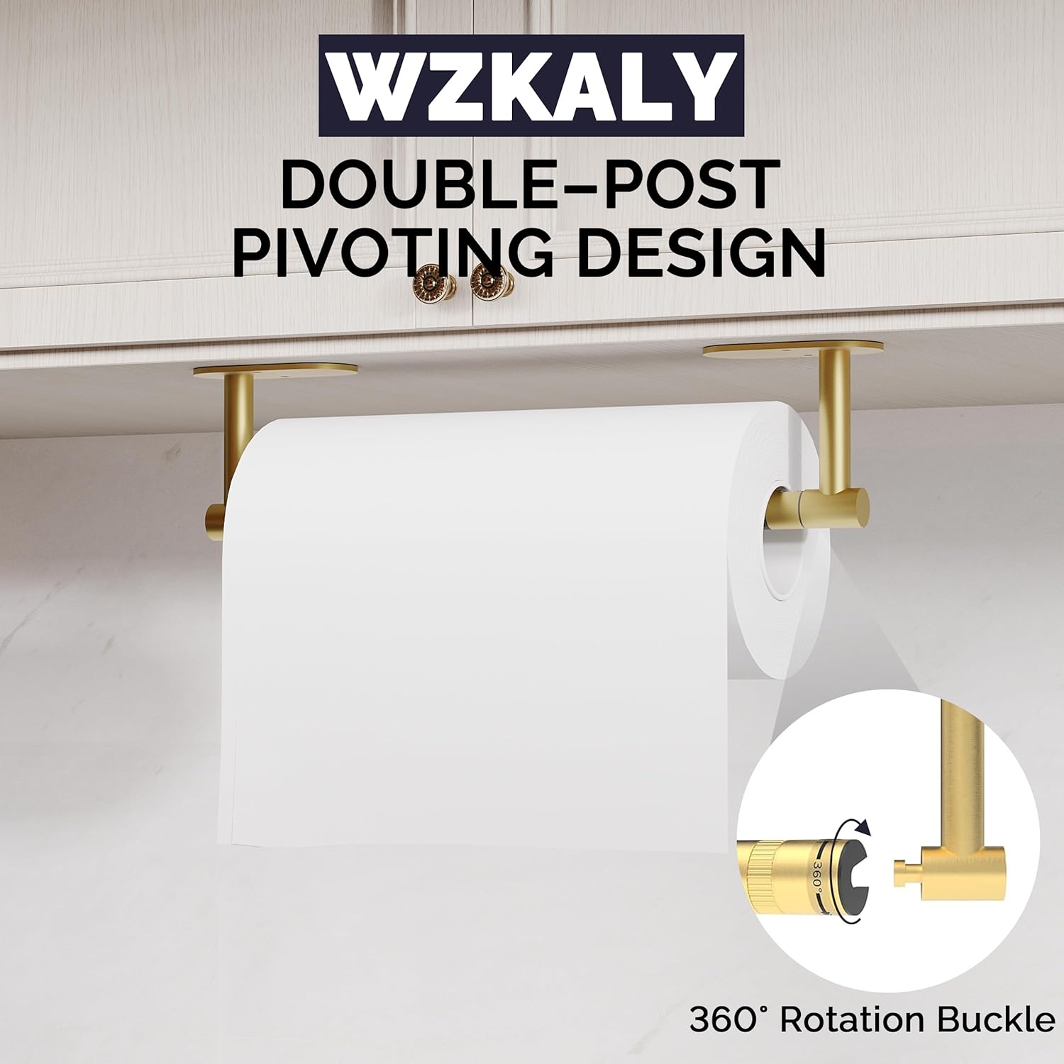 - 【DESIGN】:The double-post pivoting design makes it simple to replace the paper towels. The revolving buckle successfully keeps the kitchen towel from coming off, and the symmetrical design adds aesthetic value to your kitchen.