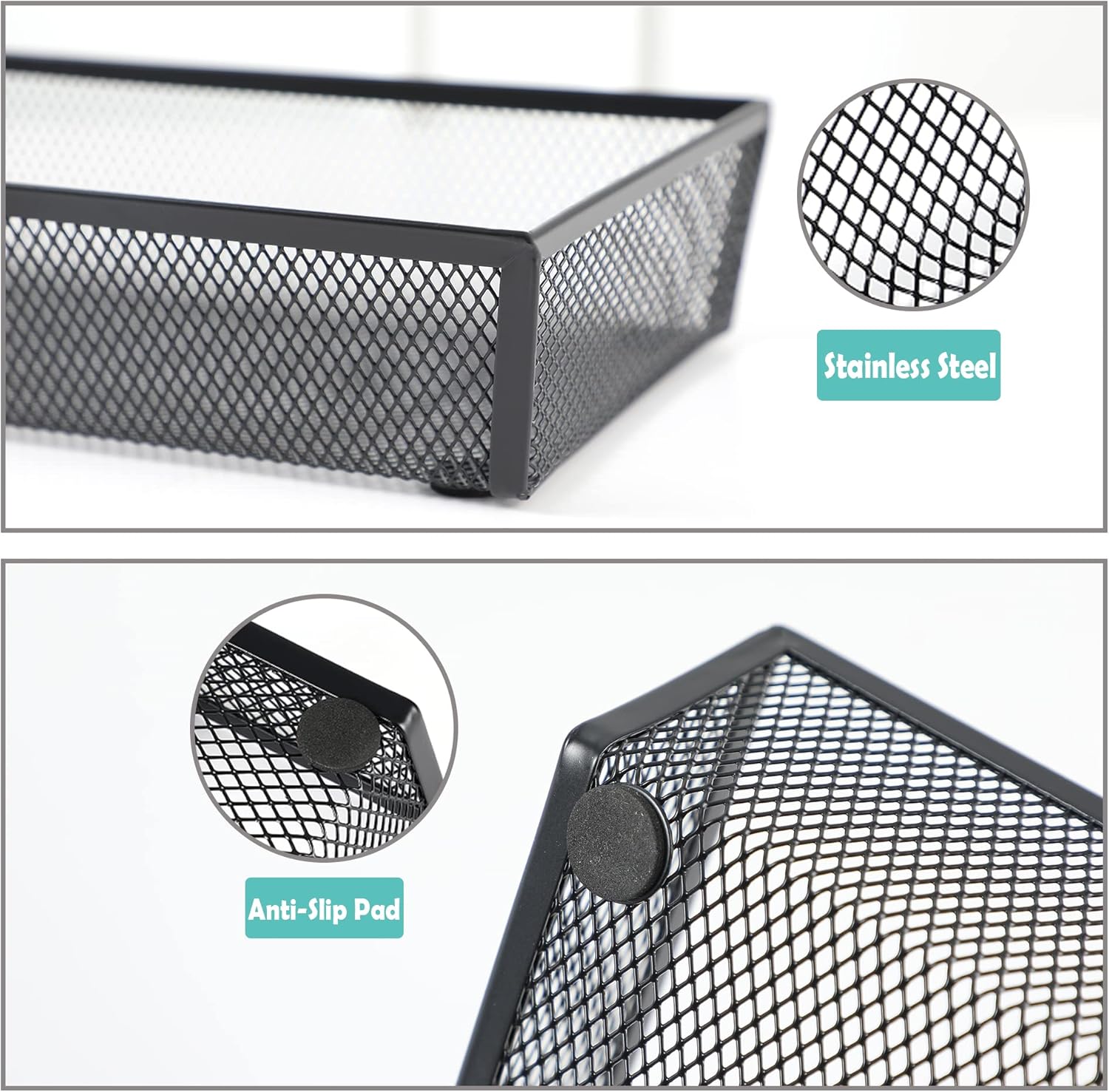 - Reliable Material: The Silverware organizers are made of quality steel mesh, not easy to deform or break. The thickened coating can keep it from cracking and peeling. Easy to clean and no upkeep is required.