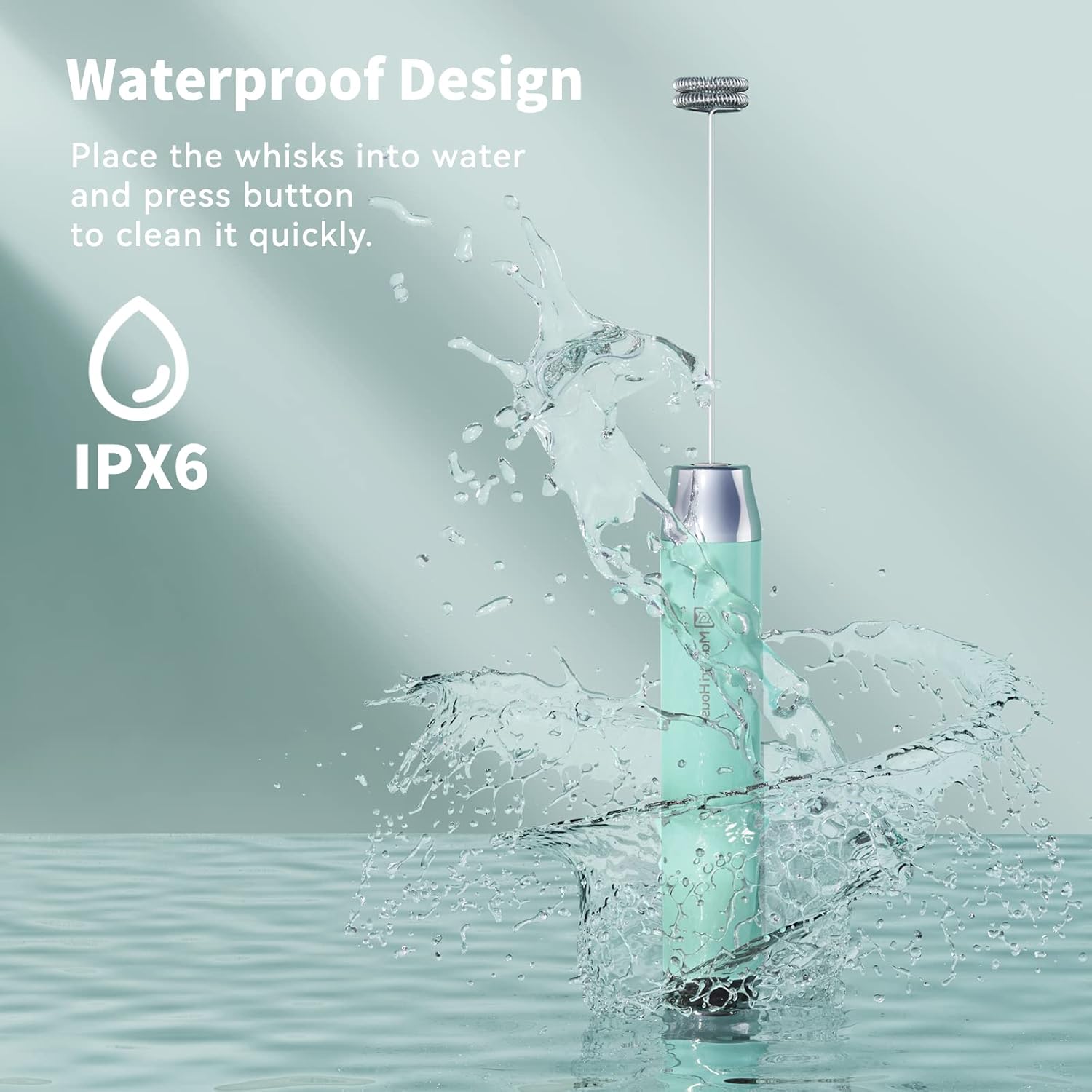 - One-button Operated Design: One press to start the whisking and another press to stop frothing. Just place the LunaFro handheld milk frother’s whisk into the container with milk or other liquid food, then press the button to make milk foam, and press the button again to stop working. It’s effortless to clean. Only put the mixing head into water or soapy water, and then press the button to let eddy water current clean it completely.