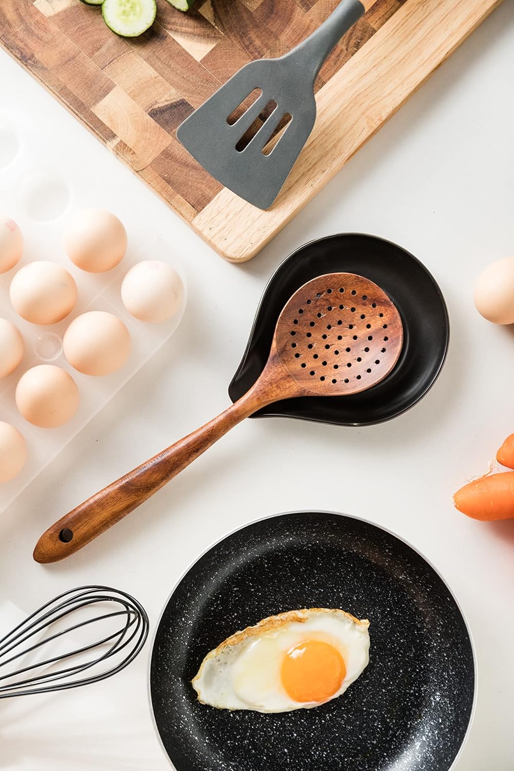 - Large Size: A spoon rest will still leave your counter messy and full of drips. Our 5 inch cooking spoon rest is large enough to hold any size spoon, spatula etc. You can put 2 or 3 wooden spoons on it, or 2 pieces of the silicon utensil set