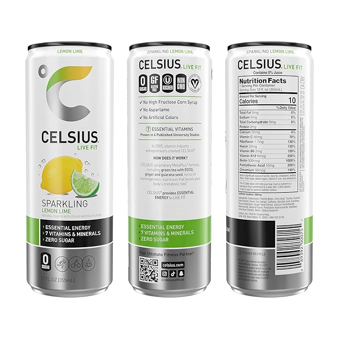 CELSIUS Sparkling Lemon Lime, Sugar Free Energy Drink, 12 Fl Oz (Pack of 12)