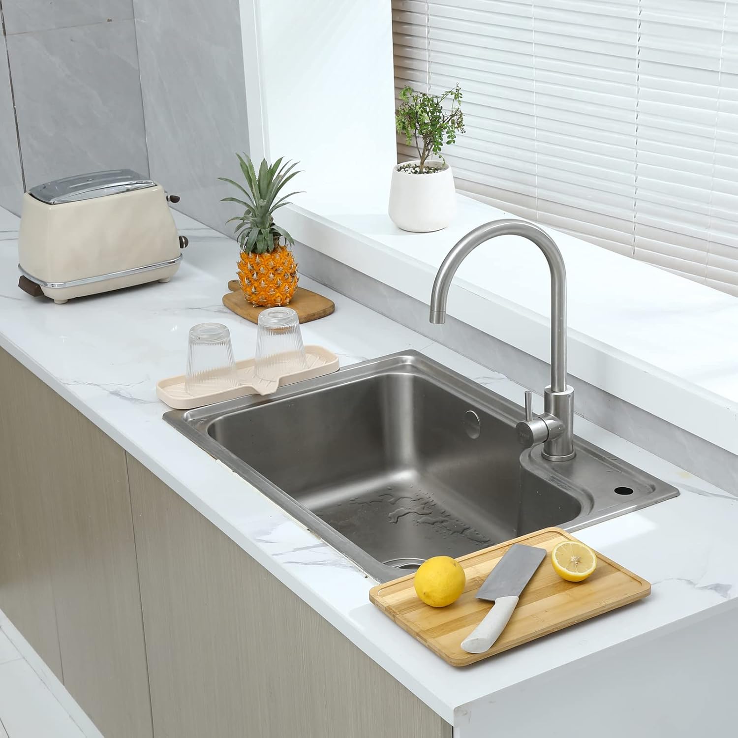 - Food Grade Silicone: The soap dispenser tray is made from high-quality food grade silicone, so it's safe for use in the kitchen or bathroom