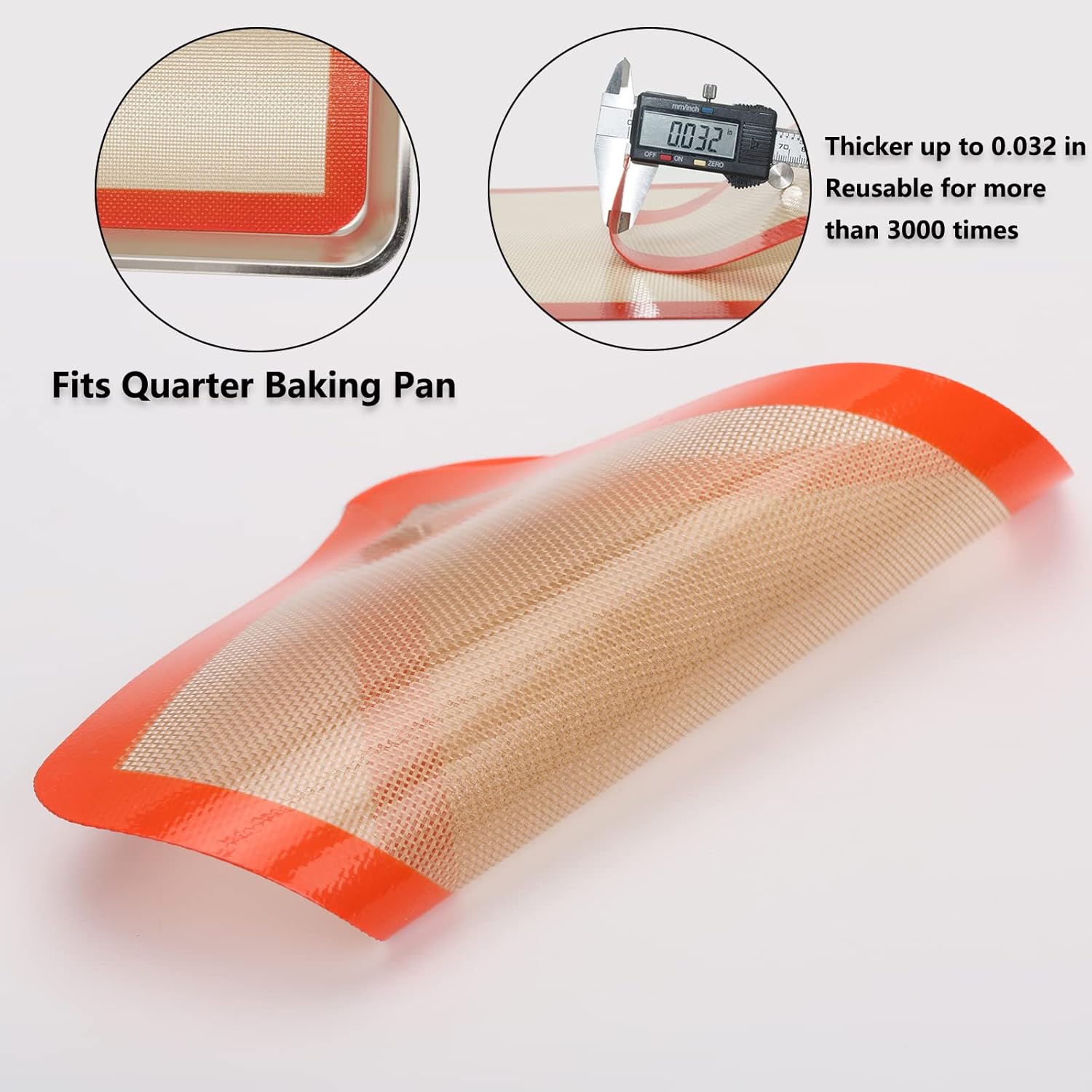 - 【7-7/8" x 11-4/5" RECTANGULAR LINERS FOR QUARTER SHEETS】Fits quarter baking sheets or pans of US standard, making them a great alternative to parchment paper or cooking sprays. The baking mat’s thickness is 0.032 inches. Can be used for a variety of baking tasks, such as baking cookies, roasting vegetables, or making sheet cakes.