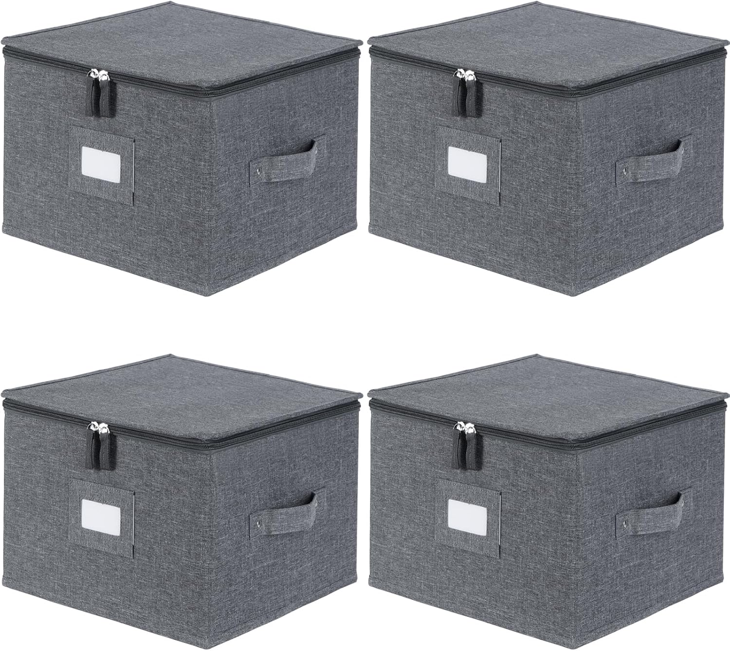 popoly China Storage Containers Inside 12" W x 8" H, Dinnerware Storage Box for Dishes Plate Storage with 24 Felt Dividers, Hold 24 Plates, Hard Shell and Stackable(4PACK