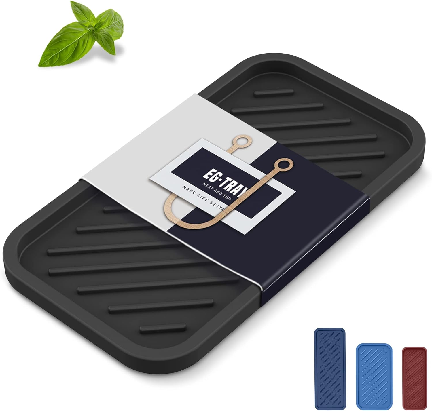 - 【Multiple Uses】Silicone tray is used in kitchen sink, bathroom countertop, living room, windowsill and other places, suitable for placing any suitable size items, such as water cups, soap dispensers, soap, cleaning cloths, small green plants, dishwashing sponges, Stainless Steel Sponges, etc. We have developed 3 sizes, 8 colors to choose from, if you buy the wrong size or don't like the color, please contact us and we will send you the product you need.