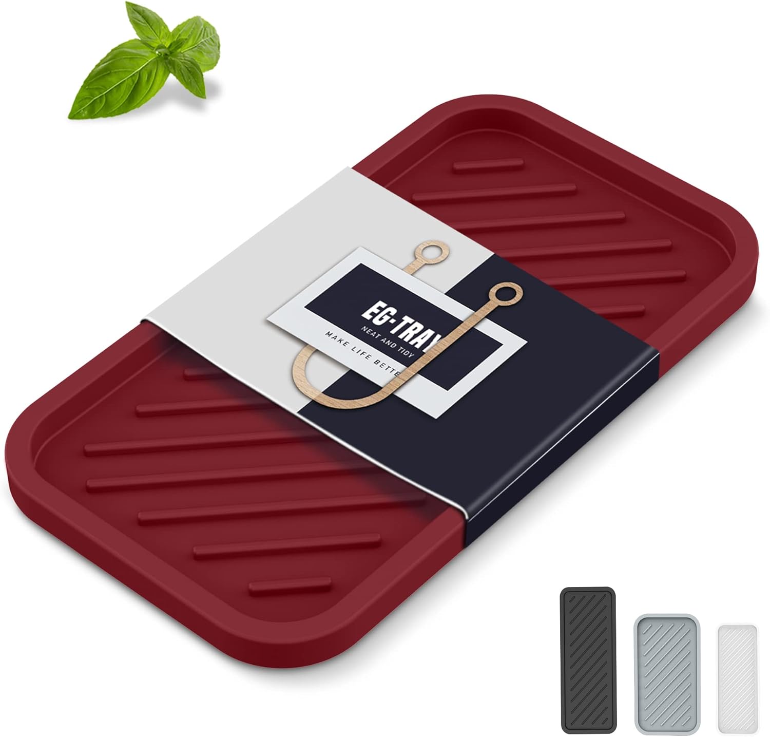 - 【Multiple Uses】Silicone tray is used in kitchen sink, bathroom countertop, living room, windowsill and other places, suitable for placing any suitable size items, such as water cups, soap dispensers, soap, cleaning cloths, small green plants, dishwashing sponges, Stainless Steel Sponges, etc. We have developed 3 sizes, 8 colors to choose from, if you buy the wrong size or don't like the color, please contact us and we will send you the product you need.