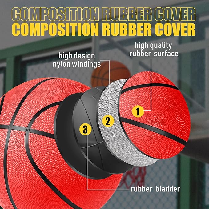 • Size 7 Basketballs: these rubber basketballs measure an official size 7, about 29.5 inches/ 75 cm in perimeter and 9.84 inches/ 25 cm in diameter, a suitable size for men, women and youths above 12 years old, nice for both indoor and outdoor playing, lightweight and easy to grab, providing you with better sports experience
