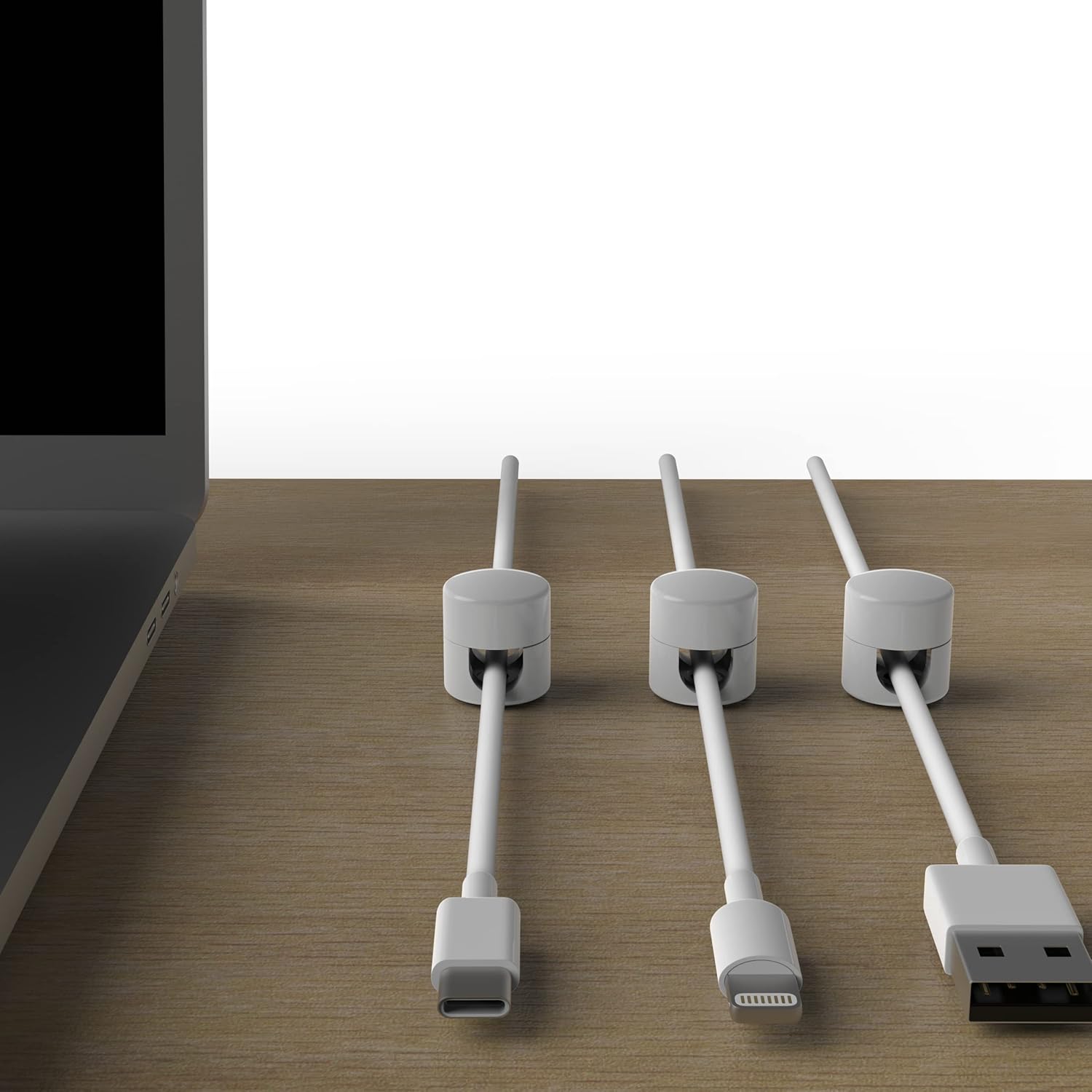 Cable Anchors for Desk Organization White | Premium Aluminum Cord Organizers | Charger + Cable Management Clips for Home & Office | Stylish, Sturdy, & Functional | (3 Pack)
