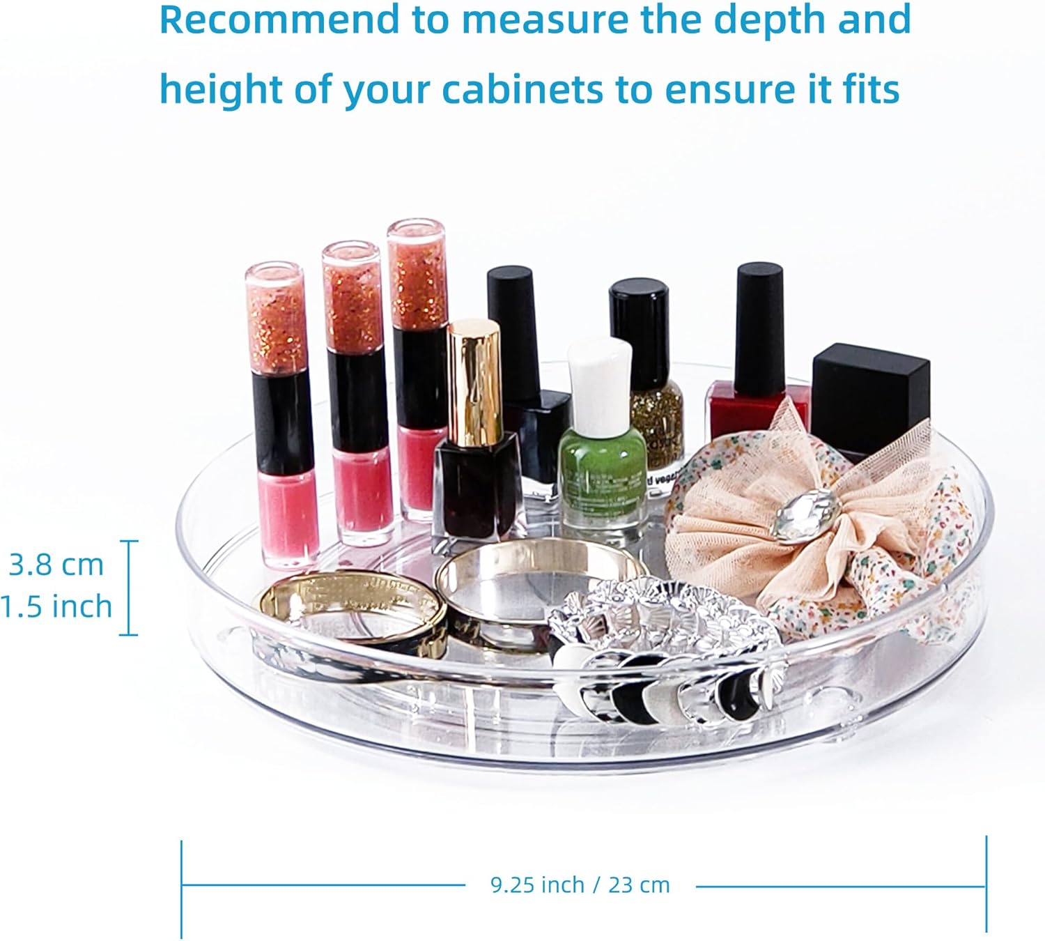 4 Pack Lazy Susan 9.2" Inch Turntable Organizer Pantry Organization and Storage Container Bins Spice Rack Cabinet Rotating Condiment for Pantry Kitchen Vanity Bathroom Jewelry Holder Clear