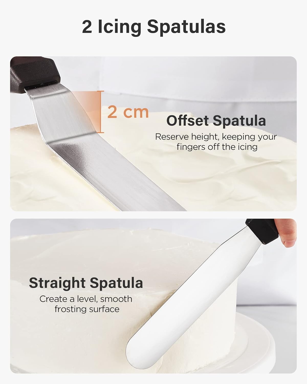- All-in-One Springform Pan & Bakeware Set: Enhance your baking with this complete kit, including a 9-inch springform pan, a 7-inch cheesecake pan, and a 4-inch mini cake pan. It also features essential tools like 30 parchment papers, 2 icing spatulas, 3 smoothers, 1 cake leveler, 12 piping tips, 2 couplers, 50 pastry bags, 40 baking liners, and a cleaning brush. Plus, a User Guide eBook is included to help you master your cake-making skills