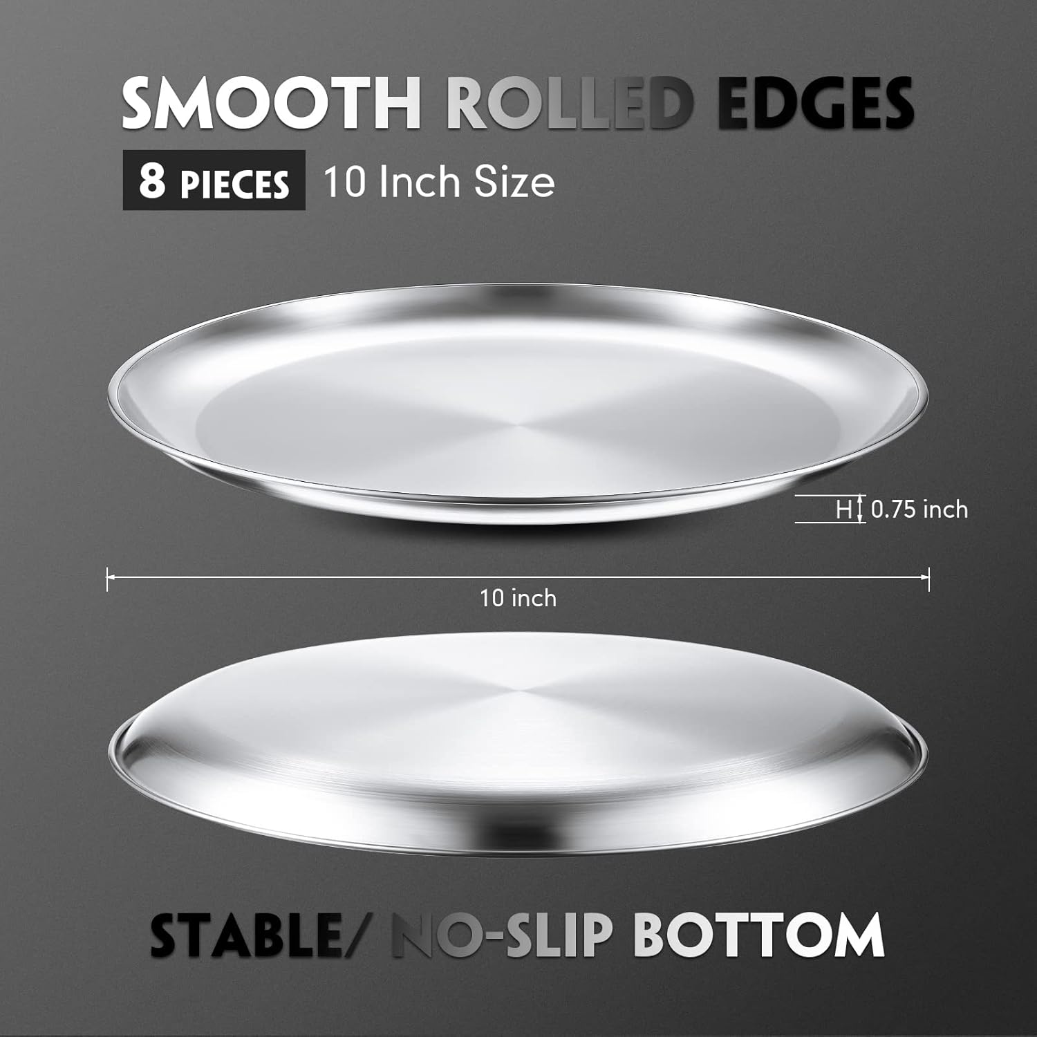 - Package Contents: there are 8 pieces of stainless steel plates in silver color, the sufficient amount can meet your daily use and replacement. not just for oven use, our pizza pans can also be applied for serving your delicious creations. invest in the Stainless Steel Pizza Pans today and experience the ease of baking and serving your favorite pizza creations