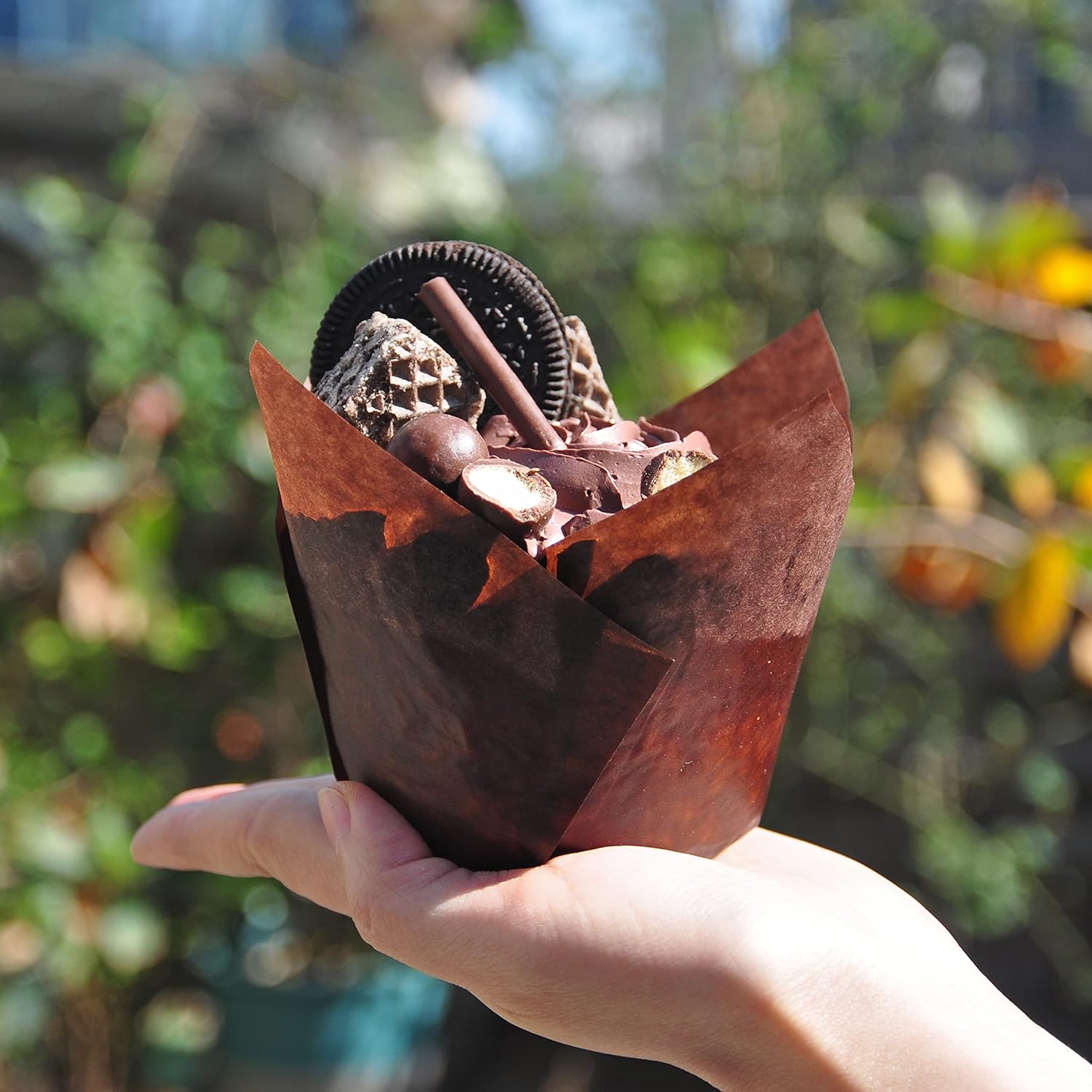 Jumbo Extra Large size Brown Tulip Baking Cups 2-1/4"(Base diameter) x 3-3/4"(Wall height) Greaseproof paper baking cupcake Muffin liners, Case of 130 pcs