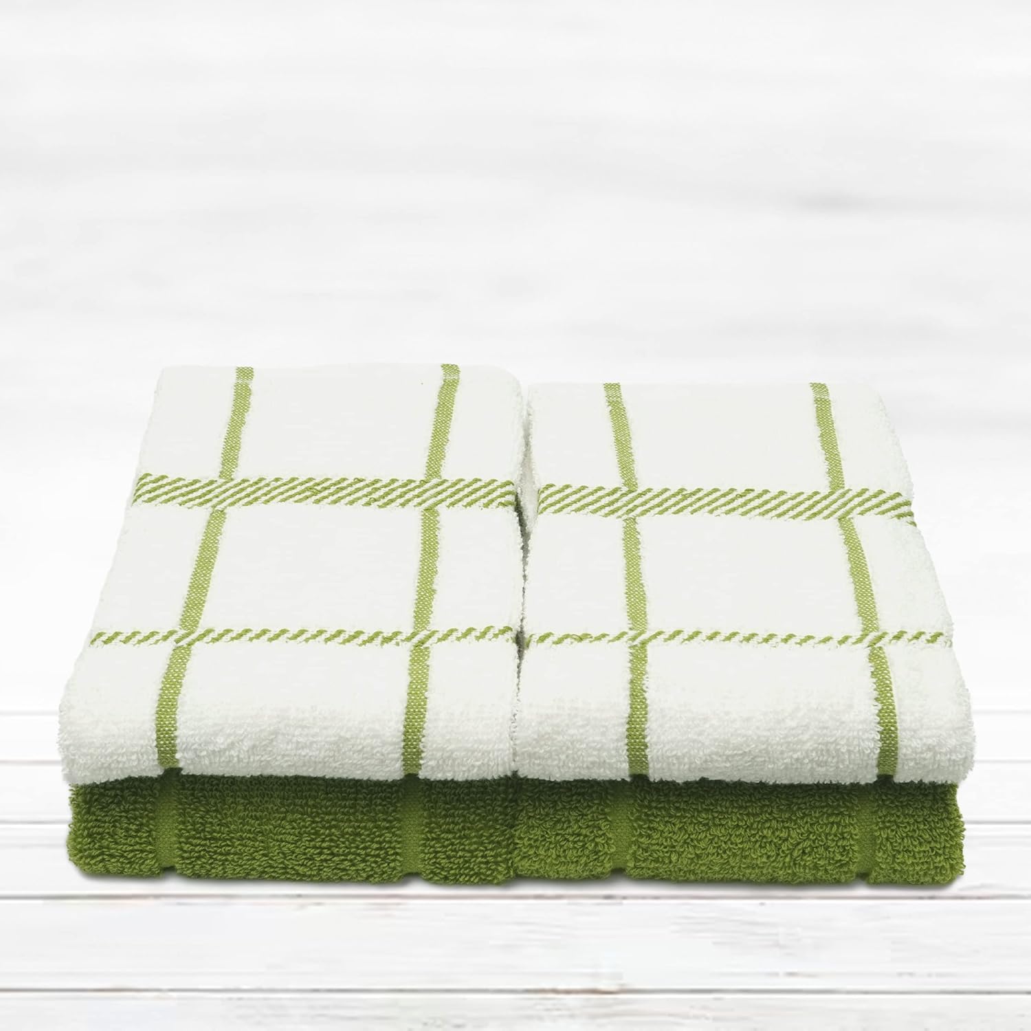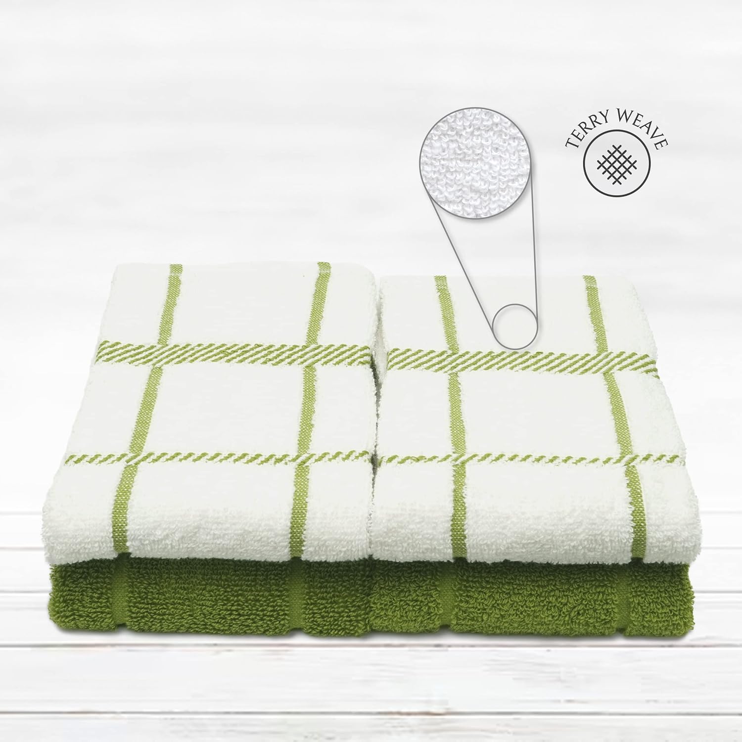 100% Cotton Terry Dish Towels, 4 pack16 x26 Inches, Super Soft and Absorbent Kitchen Towels, Perfect for Kitchen Cleaning and Dish Washing | Green