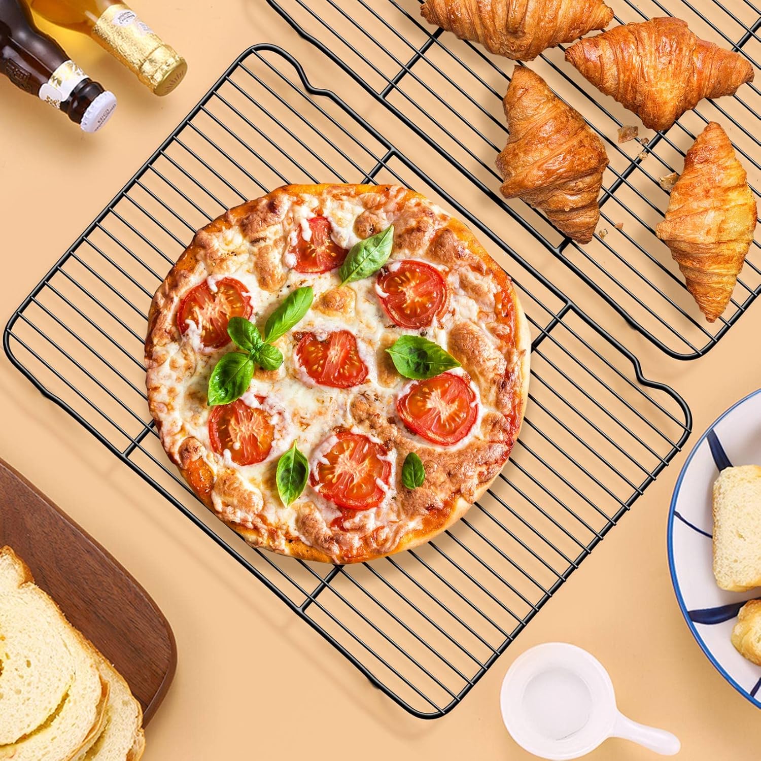 P&P CHEF Cooling Baking Rack Pack of 2, Stainless Steel Cooling Racks for Cooking Baking Roasting Grilling Drying, Dense Wires & Smooth Edge, Easy to clean, Black, 16.6" x 11.5"