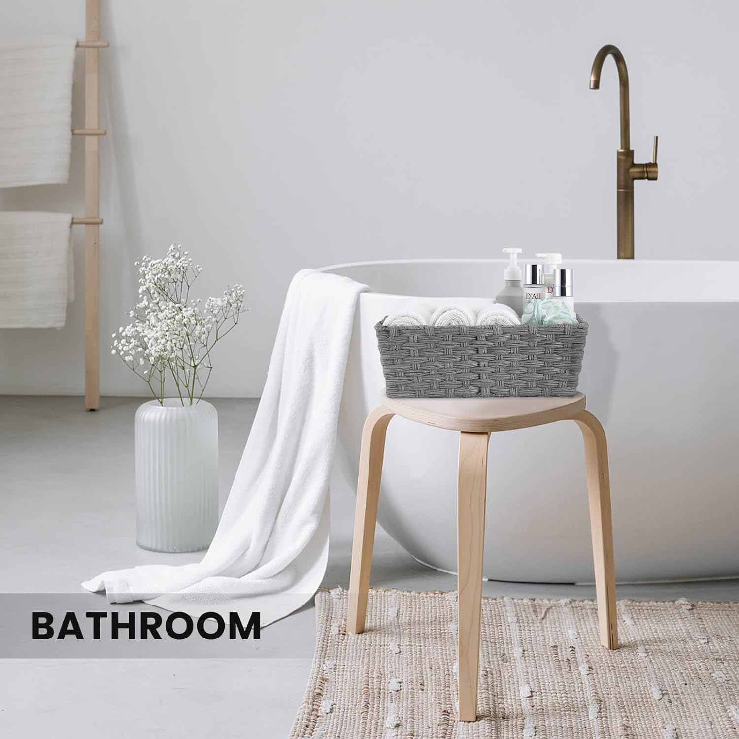 - MULTIFUNCTION: As kitchen baskets for organize seasoning, bottled water, knife, bottles and cans. As pantry baskets for organize onions, potatoes, snacks. As bathroom baskets for organize towels, blankets, clothes, lotions, shampoo, body wash. As toilet paper basket for organize tissue, toilet paper rolls. As office supplies baskets for pencil, notepad, ruler, tape, scissors, papers, books. Aslo good for laundry.