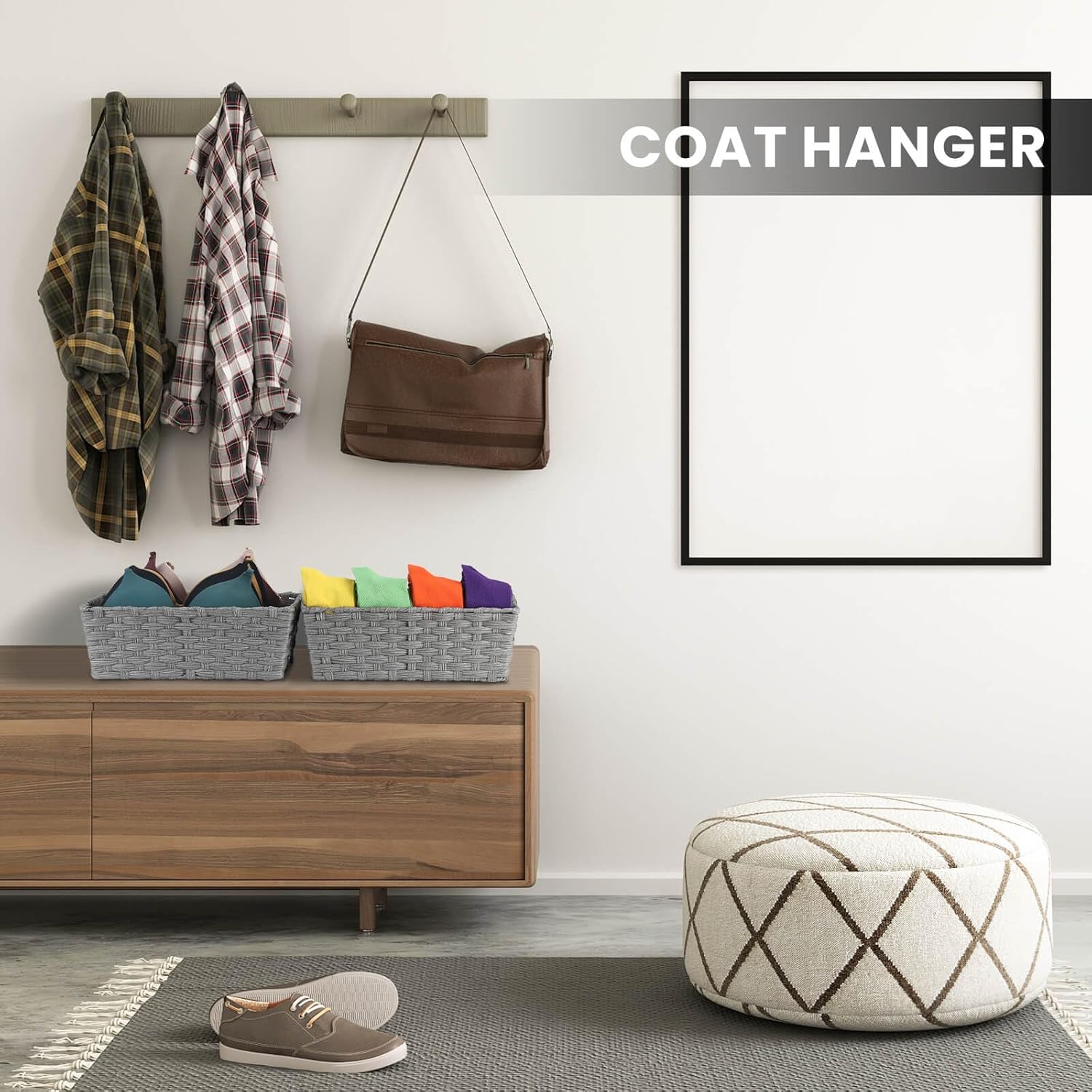 - WASHABLE & METAL FRAME: Baskets for organizing made of plastic wicker, if dirty can be wash directly, easy to use and maintain, all the basket is dampproof and waterproof, don't worry it will go mouldy, can be used outdoors. Woven over a sturdy metal frame, more solid and durable, has a strong load bearing capacity.