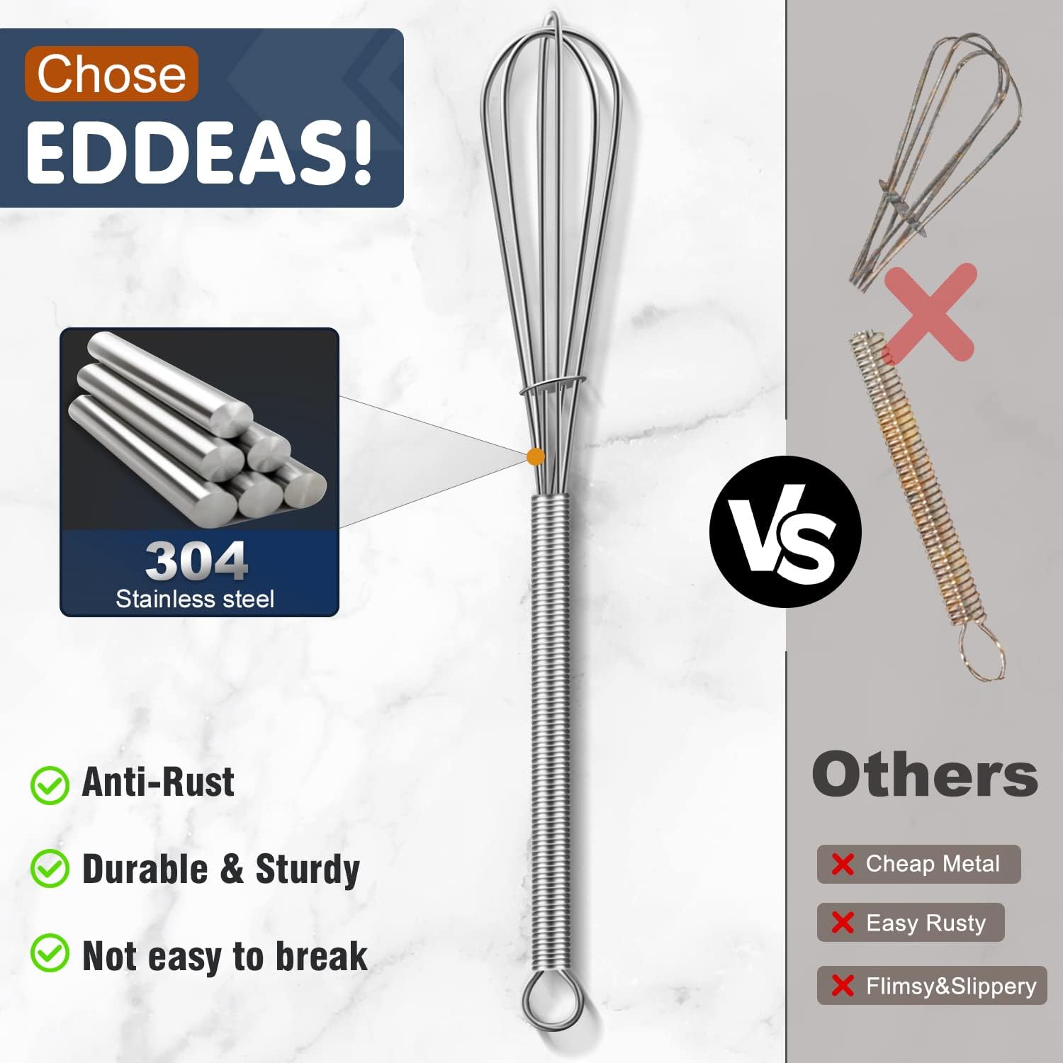 - ● SUPERIOR PERFORMANCE & MULTIFUNCTION- Eddeas Small Whisks allows to withstand high heat resistant up to 450℉. Eddeas whisk provide you vigorous whipping and aerating.