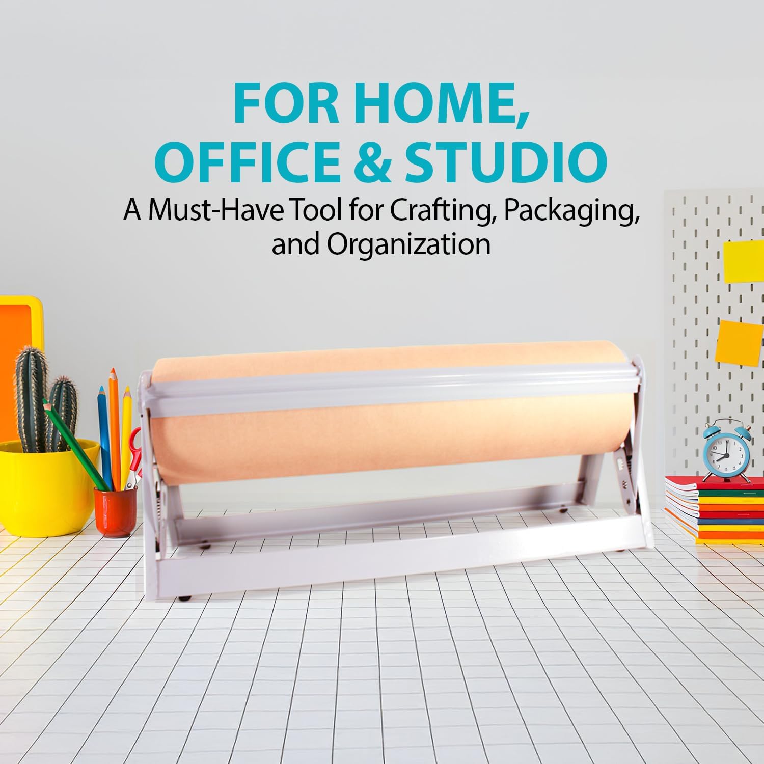 - KEEP PAPER NEAT, ACCESSIBLE & READY TO USE – No more messy rolls or wasted paper—this paper roll dispenser and cutter keeps your paper organized, easy to grab, and always ready when you need it. This kraft paper roll dispenser smart, time-saving solution for busy kitchens, classrooms, or workspaces.