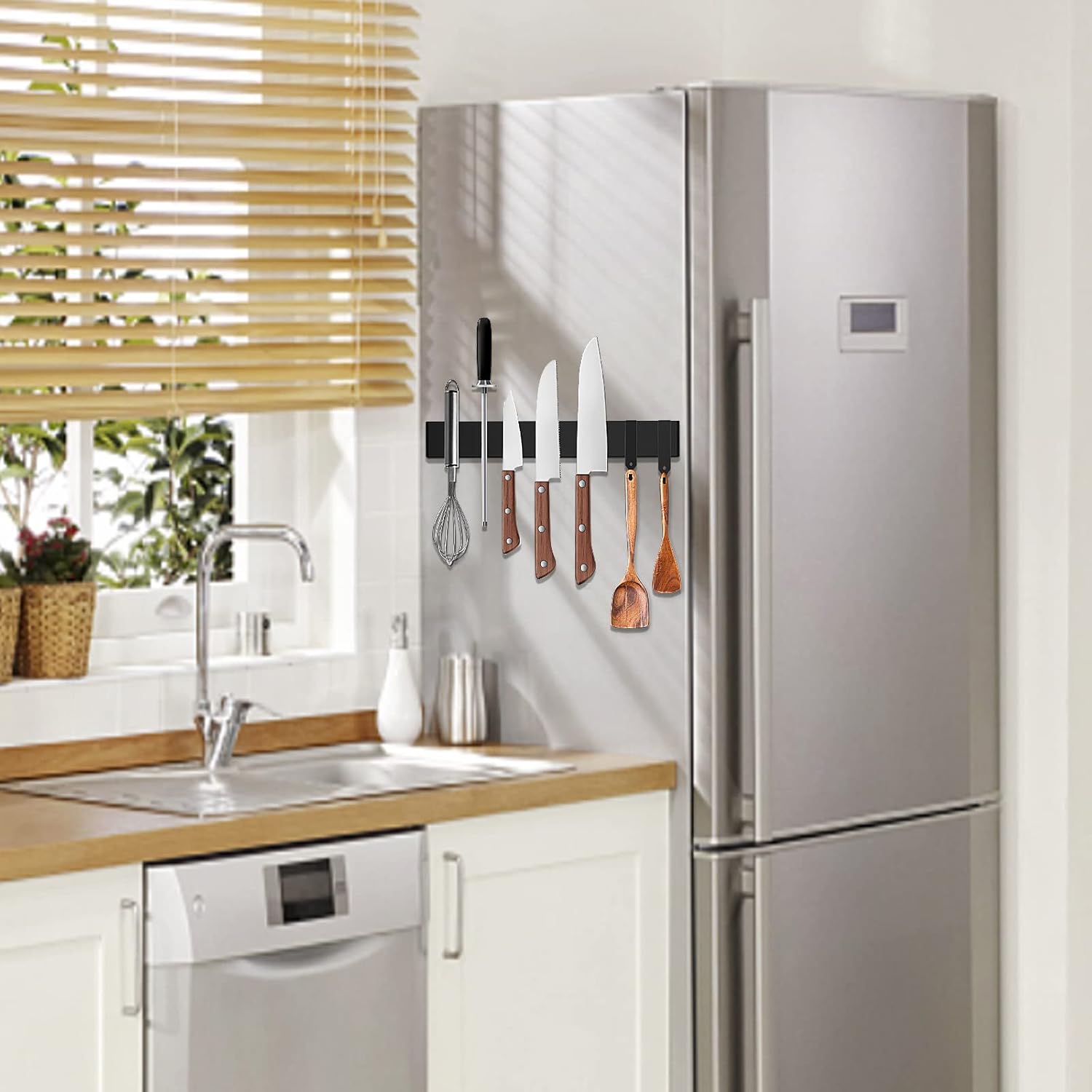 - ✔Multifunction Magnetic Holder: Magnetic knife rack can be used in tool room, garage, garden to hang tools, and in entrance hall to hang metal keys. This kitchen utensil bar can be used as knife holder, knife strip, knife rack, kitchen utensil holder, home organizer, art supply organizer & tool holder, with 3 hooks for maximum storage of non-absorbable tools. Easily access your knives or tools without having to search all over.