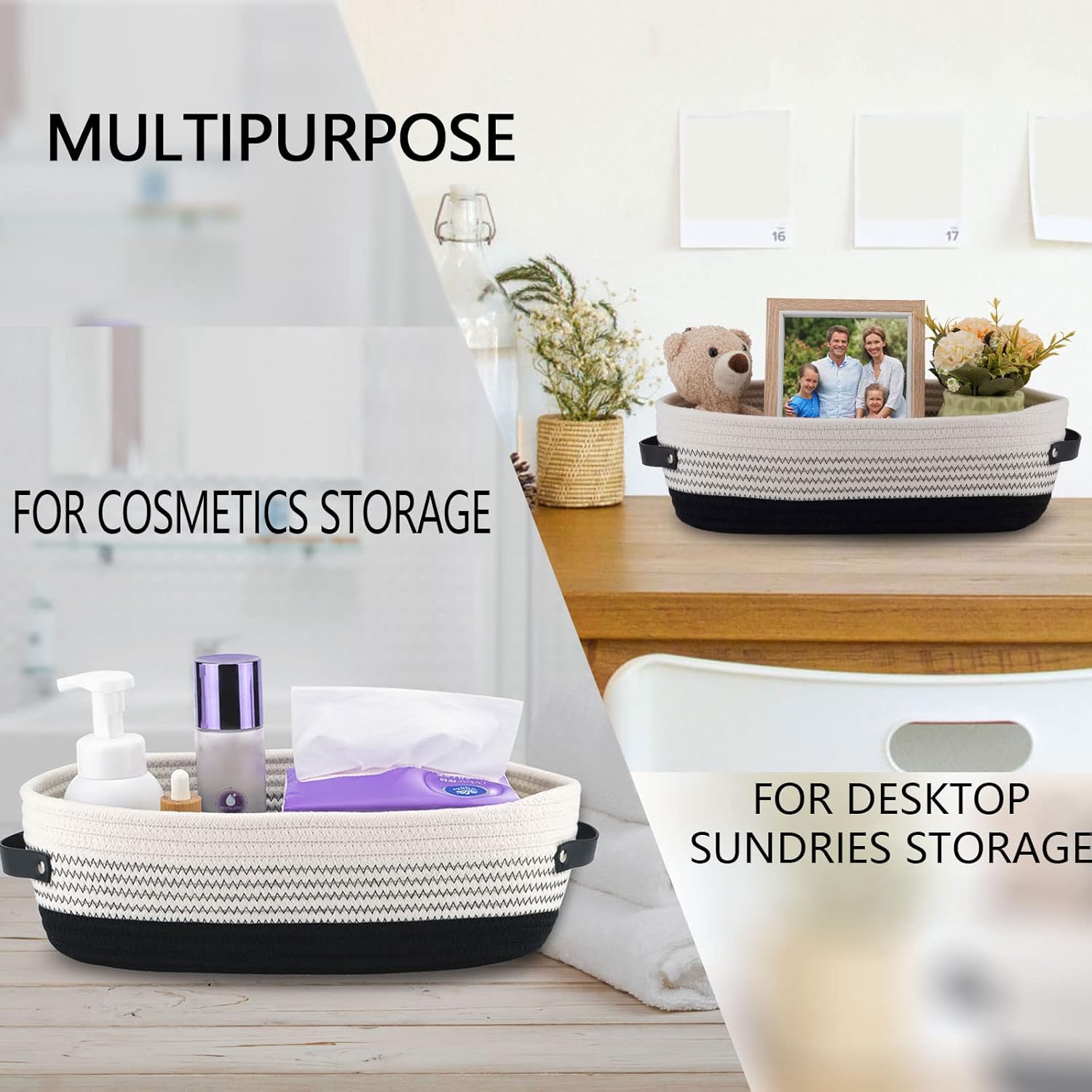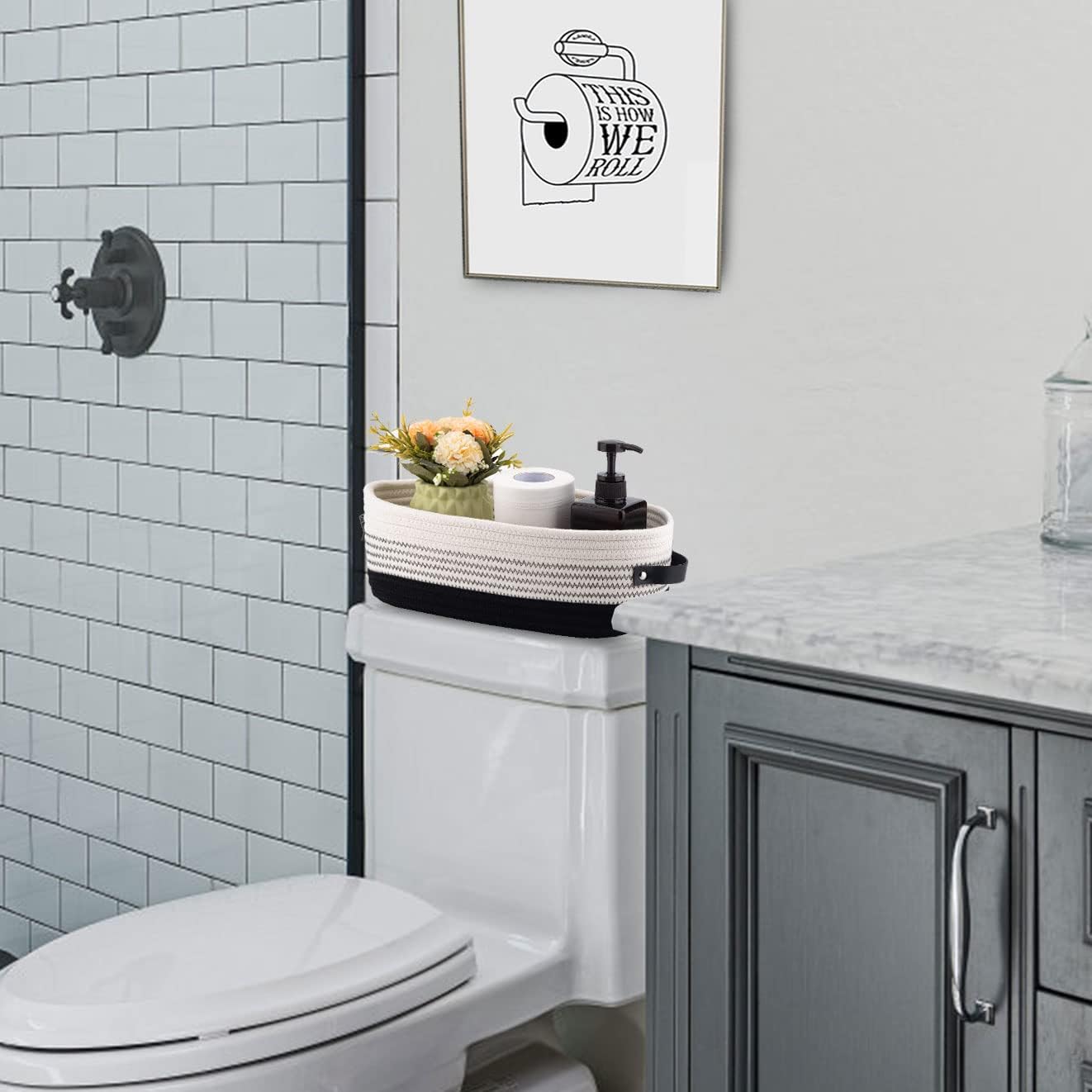 - 🍀Multi-purpose: Decor storage basket fits nicely on the counter or toilet tank,and is perfect to hold vase,planter,air freshener,soap dispenser.This storage basket can be used not only in the bathroom,but also as a organizer in living room,bedroom or nursery
