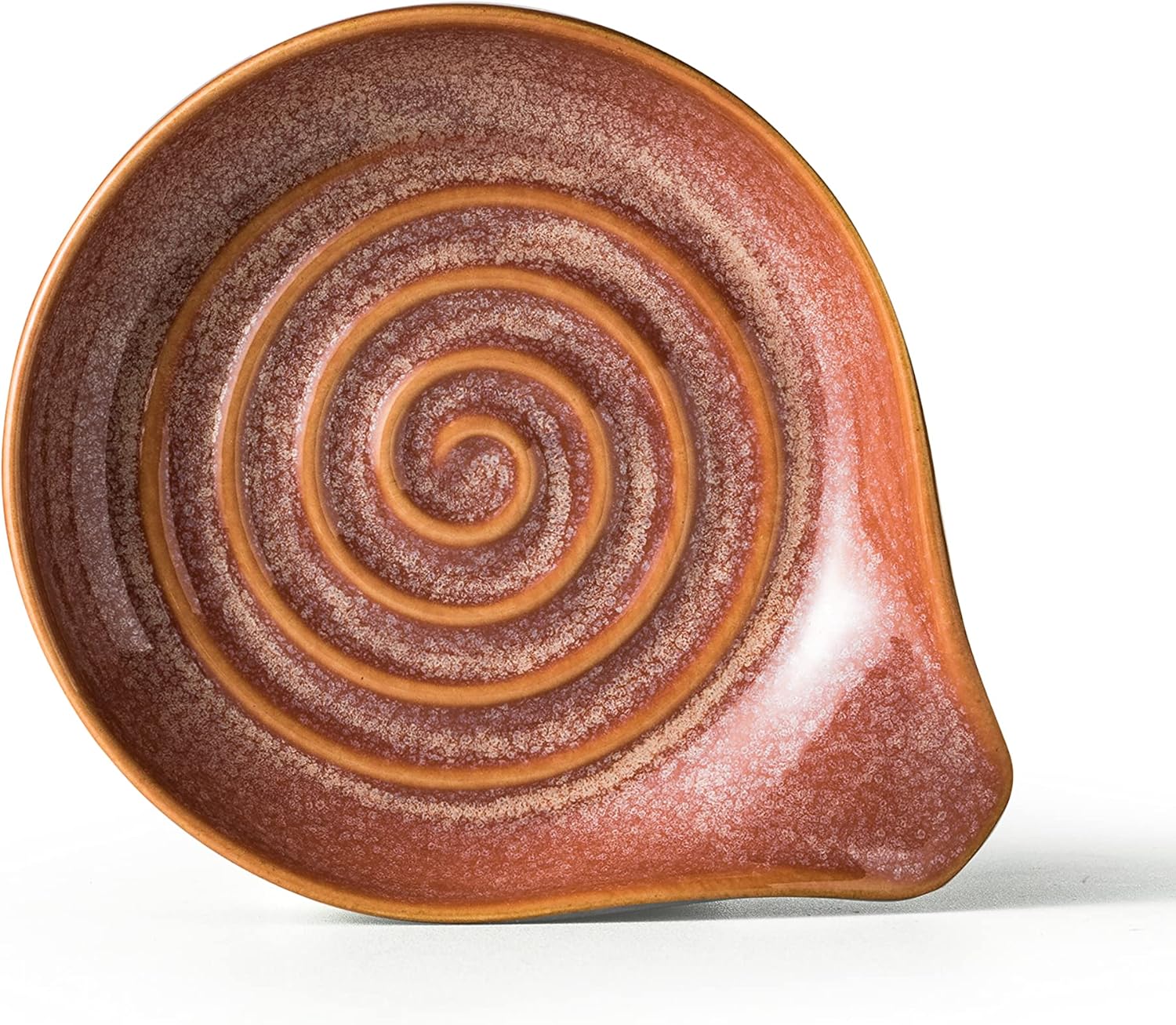 - [Unique Appearance] The swirl-shaped exterior with unique red reactive glaze create an elegant look. Our spoon rest is not only functional but also a stunning decorative piece that will complement any kitchen décor.