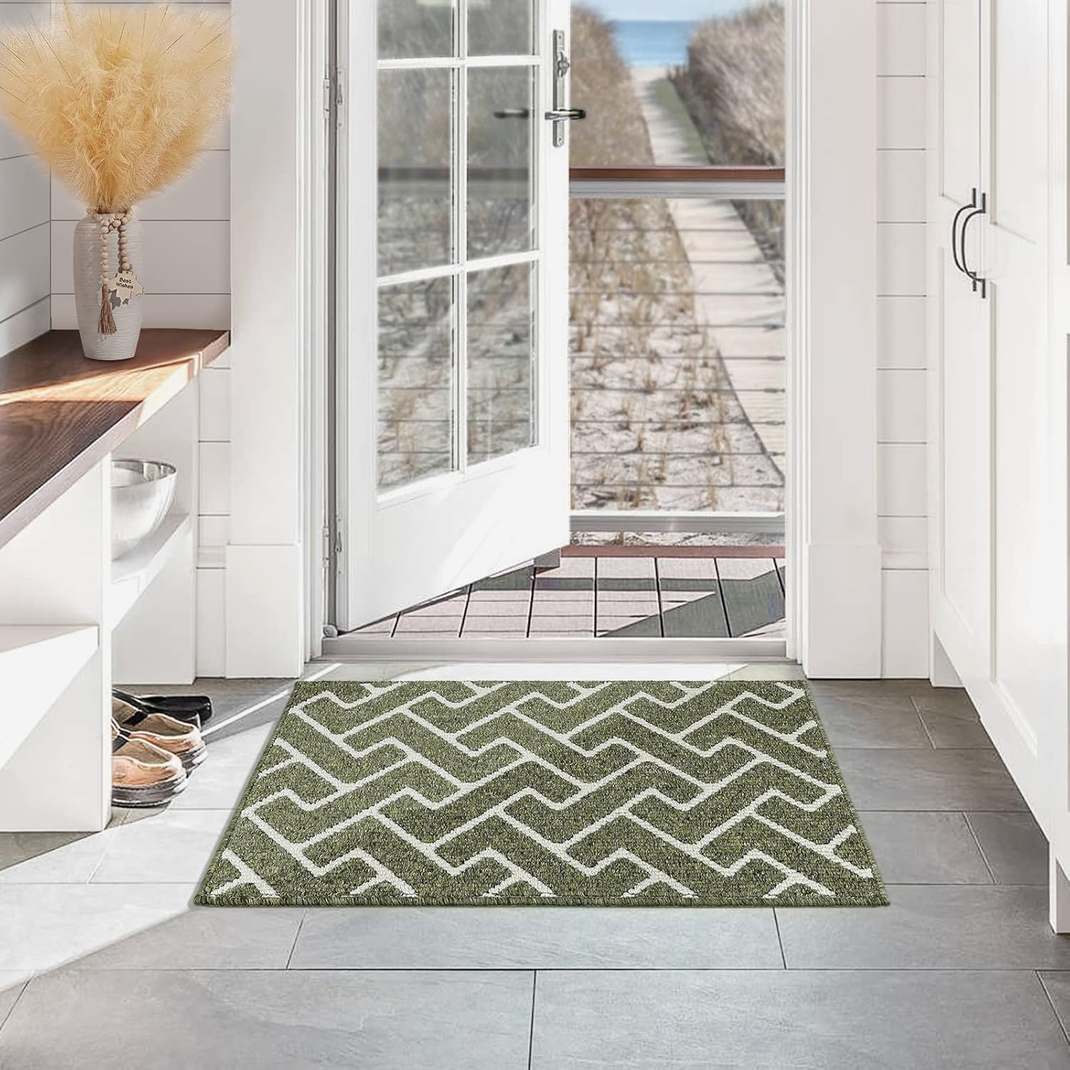 hicorfe Kitchen Rugs and Mats,Kitchen Mats for Floor,36"x59" Non Slip Runner Rug,Absorbent Resist Dirt Comfort Standing Mat Machine Washable for Entryway,Hallway,Front of Sink(Green)
