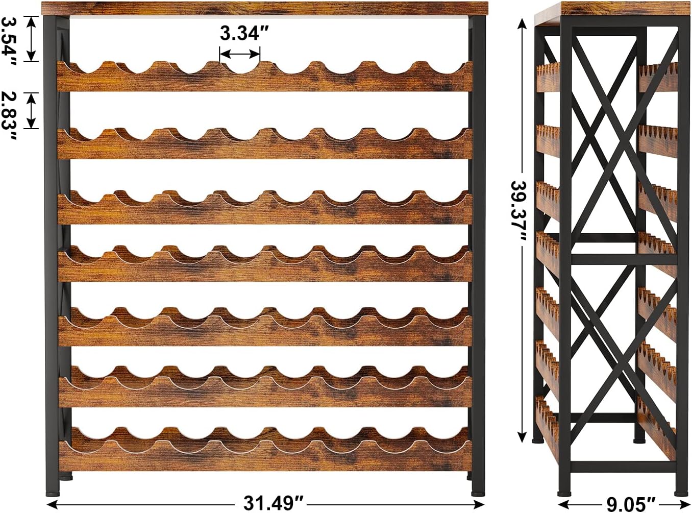 - 【High-Capacity Storage 】This wooden wine rack offers an impressive storage capacity, with room for up to 56 bottles of your favorite wines. Its large capacity makes it ideal for wine enthusiasts who love to collect and store their favorite wines.Large space on the top wooden board allow you to store wine, fruit, mixers and other wine-related.