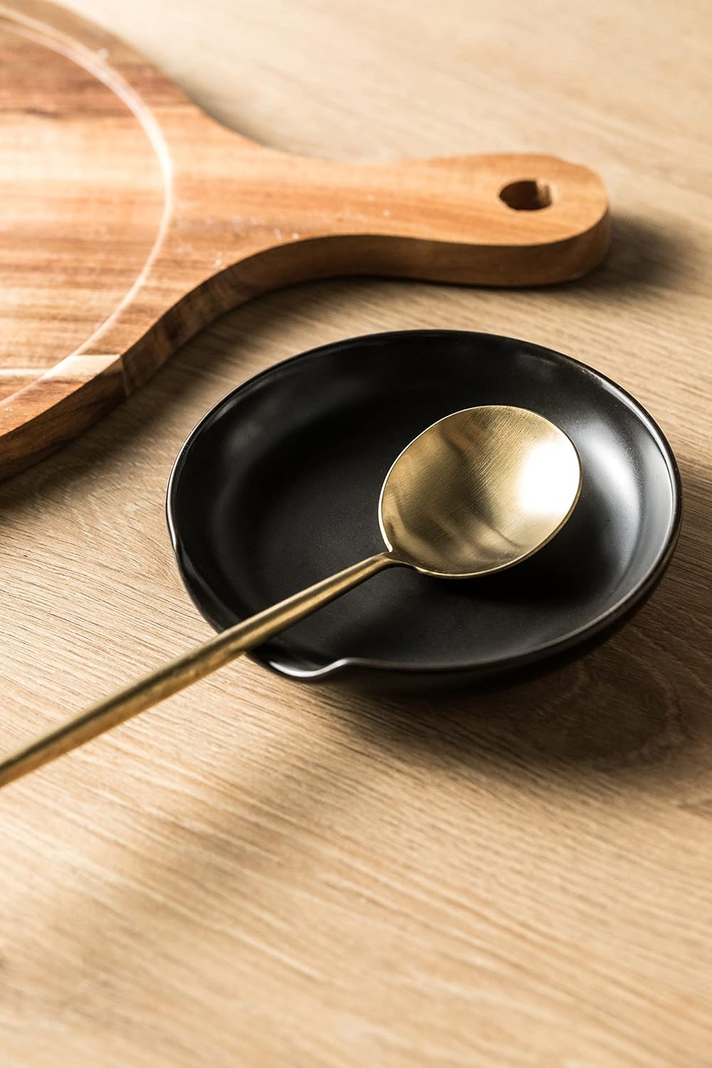 - The spoon rest is made from high temperature fired porcelain so it will last for a long time. The coffee spoon rest also has a smooth glaze that resists rust and stains, so you don't have to wipe up spills as often to keep a clean and professional work or serving station. This is a gadget made for the kitchen
