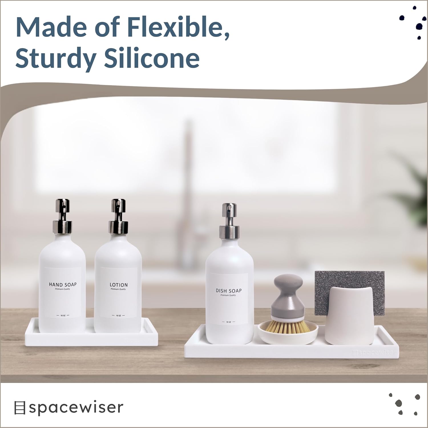 Countertop and Vanity Tray - 2 PC (11” and 7”) Shatterproof Silicone Kitchen and Bathroom Trays for Counter, Kitchen Soap Dispenser Tray, Vanity Trays for Bathroom, Perfume Key Tray