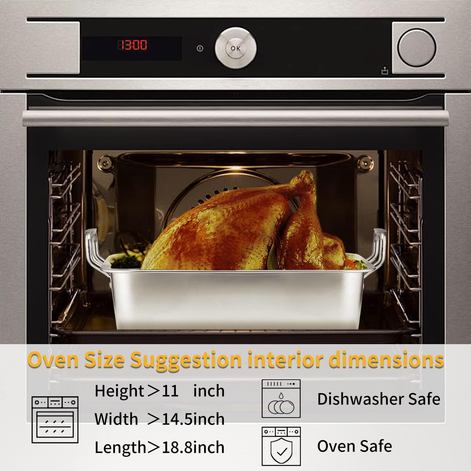 - 【Large Riveted Handles】The stainless steel handle rivets firmly on the roasting pan, provide you a convenient and secure hold. You don't have to worry about handles falling off while using the pan