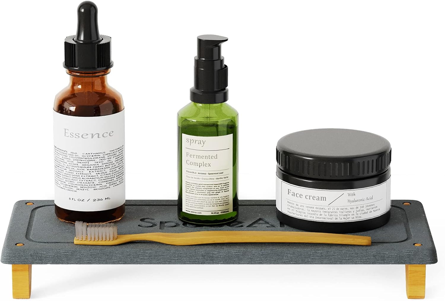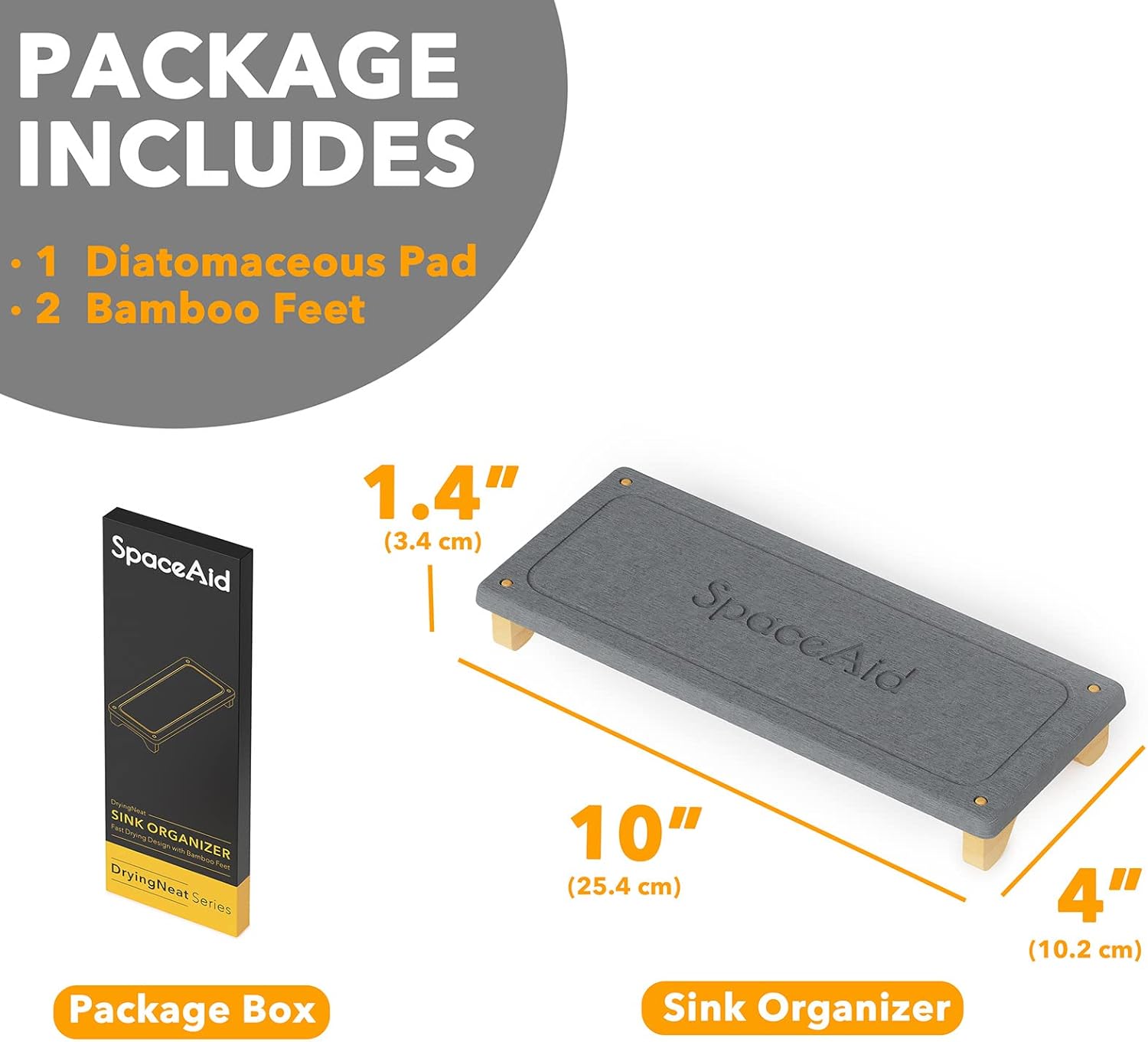 SpaceAid DryingNeat Sink Organizer, Instant Dry Sink Caddy Organizers, Kitchen Sponge Soap Holder Dispenser, Countertop Fast Drying Rack (Bamboo Feet, Dark Gray)