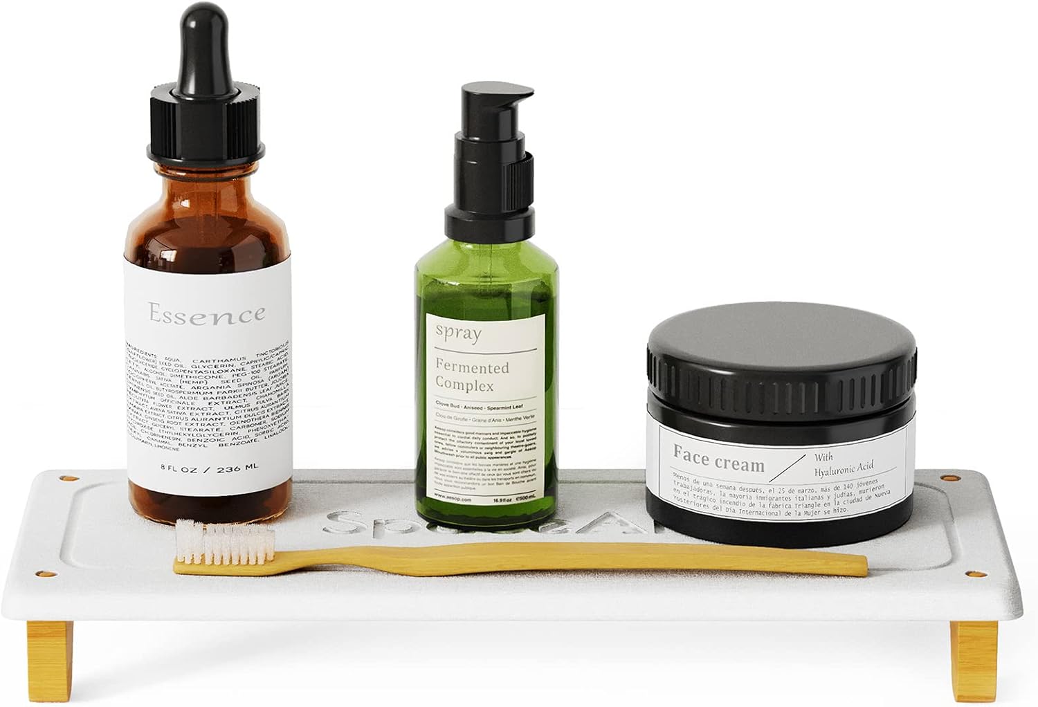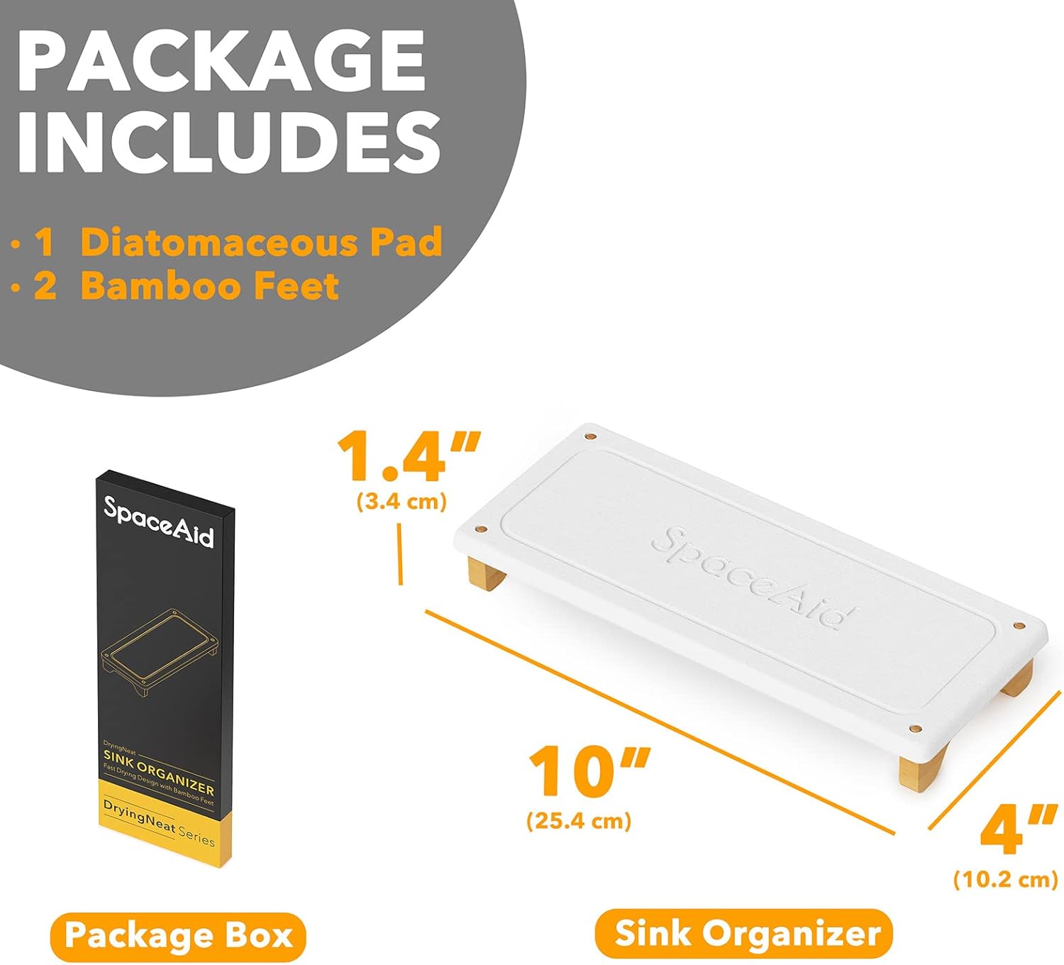 SpaceAid DryingNeat Sink Organizer, Instant Dry Sink Caddy Organizers, Kitchen Sponge Soap Holder Dispenser, Countertop Fast Drying Rack (Bamboo Feet, White)