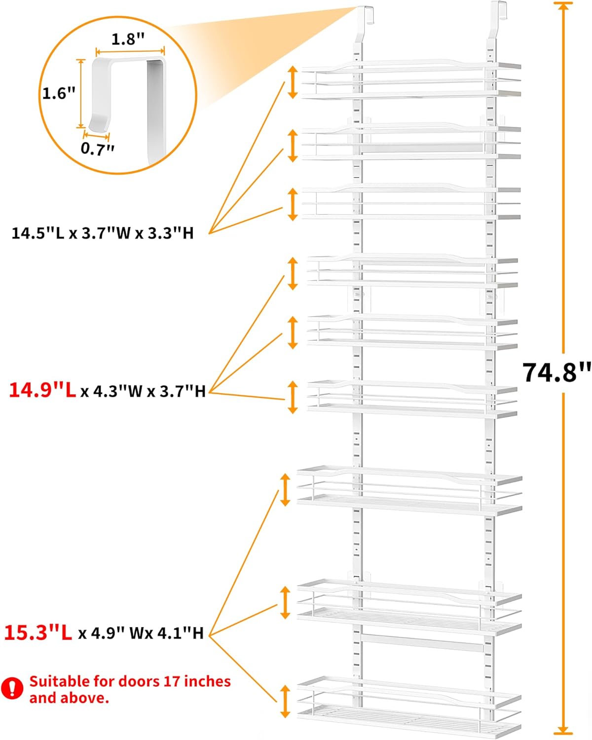 - Maximize Your Space: Our 9-Tier over the door pantry organizer is designed to make the most of your storage space, allowing you to store more items in a smaller area such as spice and some jars. Perfect for small kitchens or those with limited storage space.