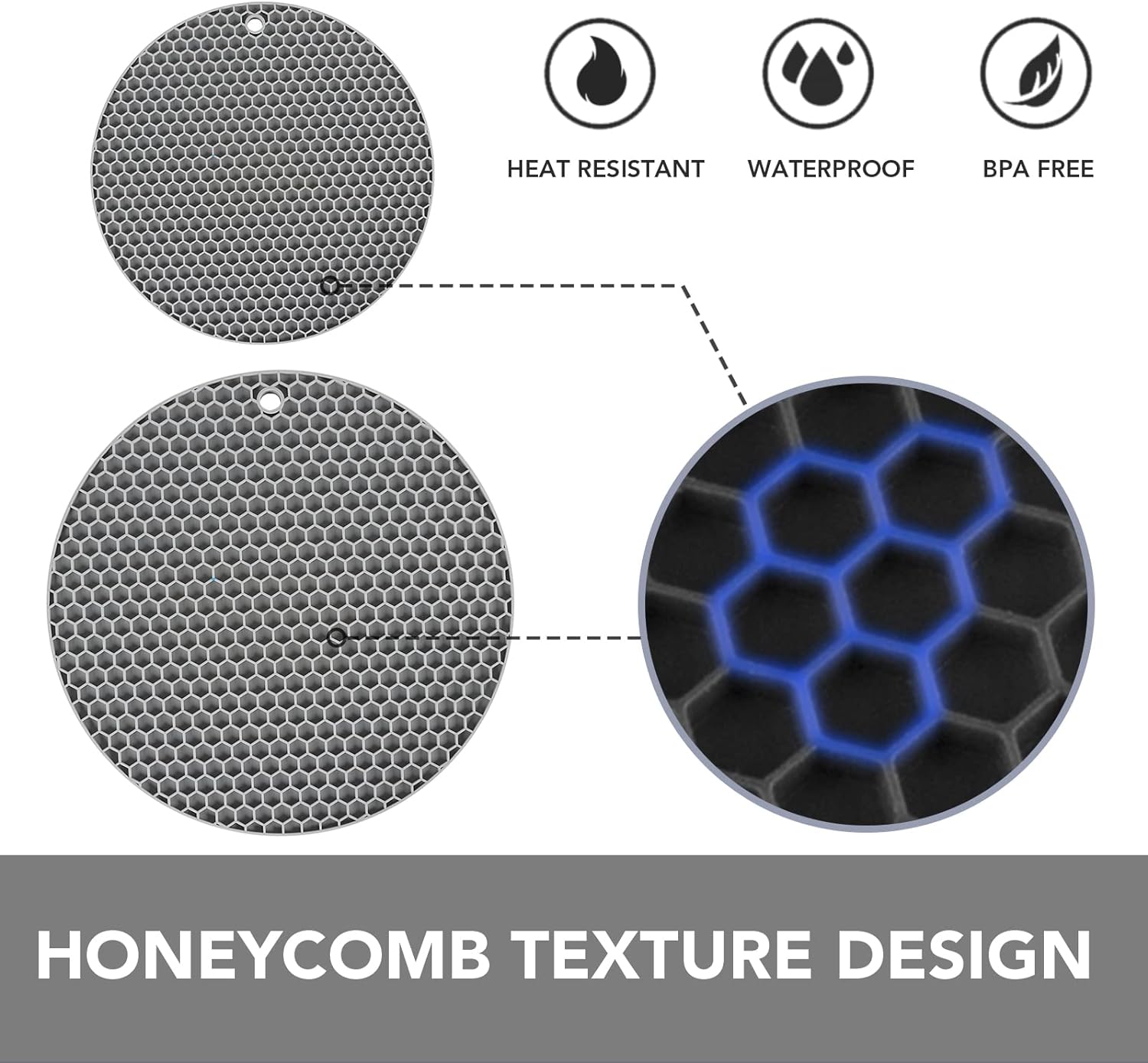 - FLEXIBLE & DURABLE TRIVETS - Our silicone trivet mats for kitchen counter are thicker than traditional sets to provide long-lasting durability and better protection for your countertops while maintaining their flexibility. The honeycomb pattern makes them more heat-resistant.