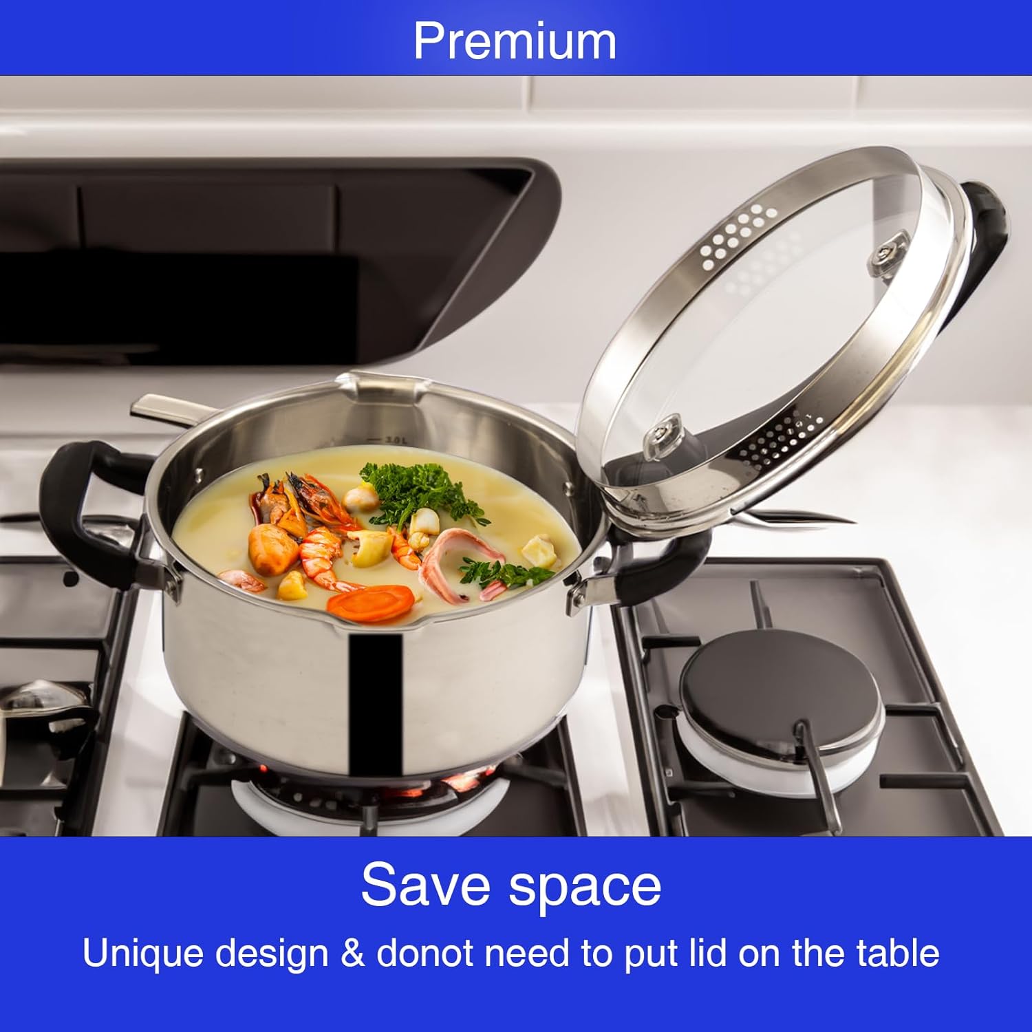 - Heatup faster & easier - the thickened triple-layer stainless steel base, featuring high-grade aluminum sandwiched between two steel layers, ensures even, rapid, and consistent heating in the pot. Moreover, it's compatible with virtually every heating method, including gas, electric, glass-top, and induction cooktops.