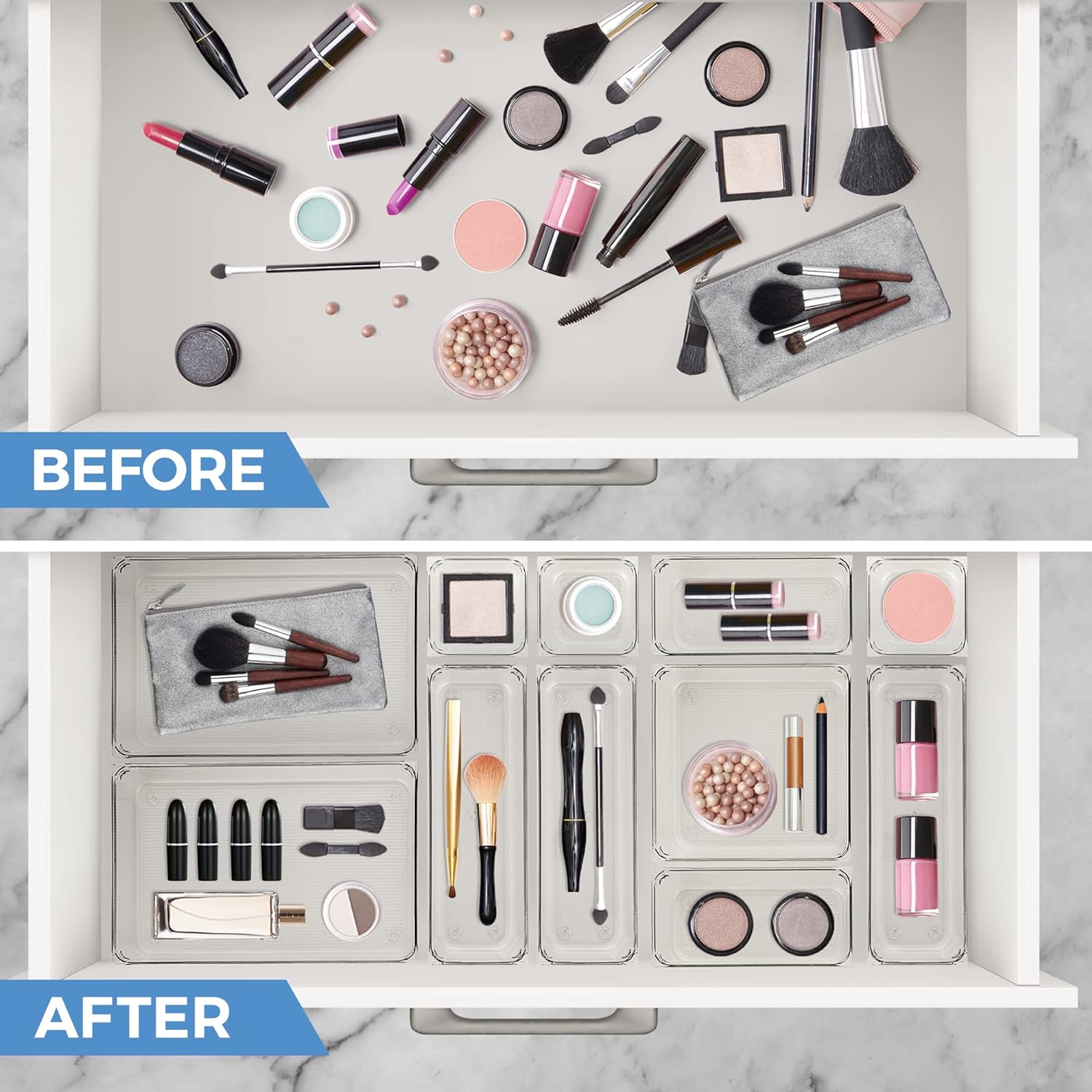 - Non-Slip Pads Included: Unlike other systems that may slide around when opening and closing your drawer, this clear drawer organizers come with non-slip pad that will keep your organizer trays in place, just stick them on the bottom of the trays