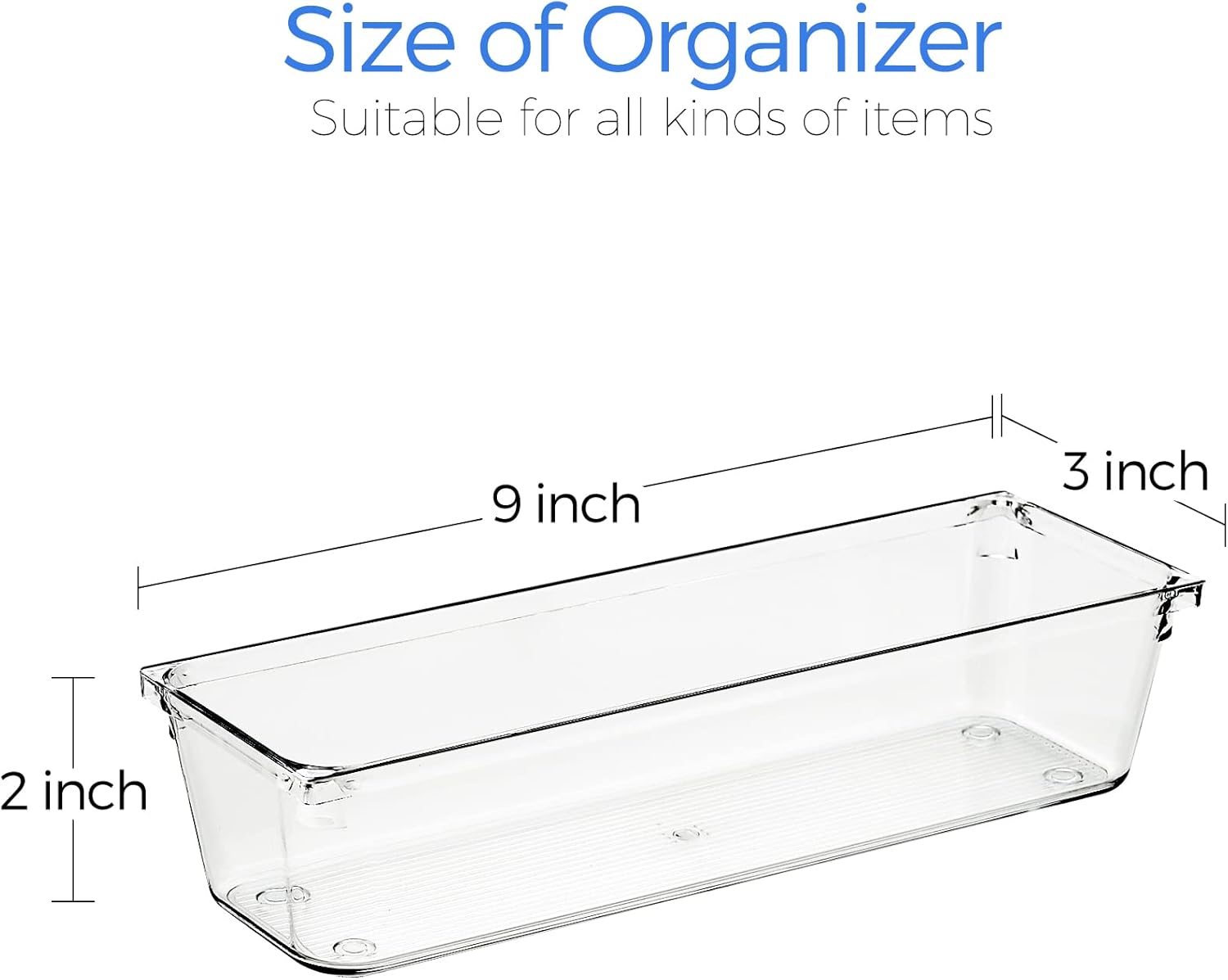 - Customizable with 6 pcs organizers: One set of the desk drawer organizers includes 6 storage bins that you can place together to create one—or many—highly-functional drawer organization systems. Includes: 3 x 9 x 2 inches (6pcs)